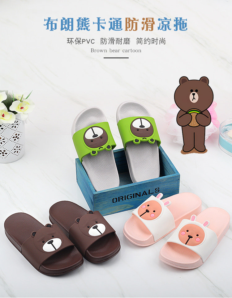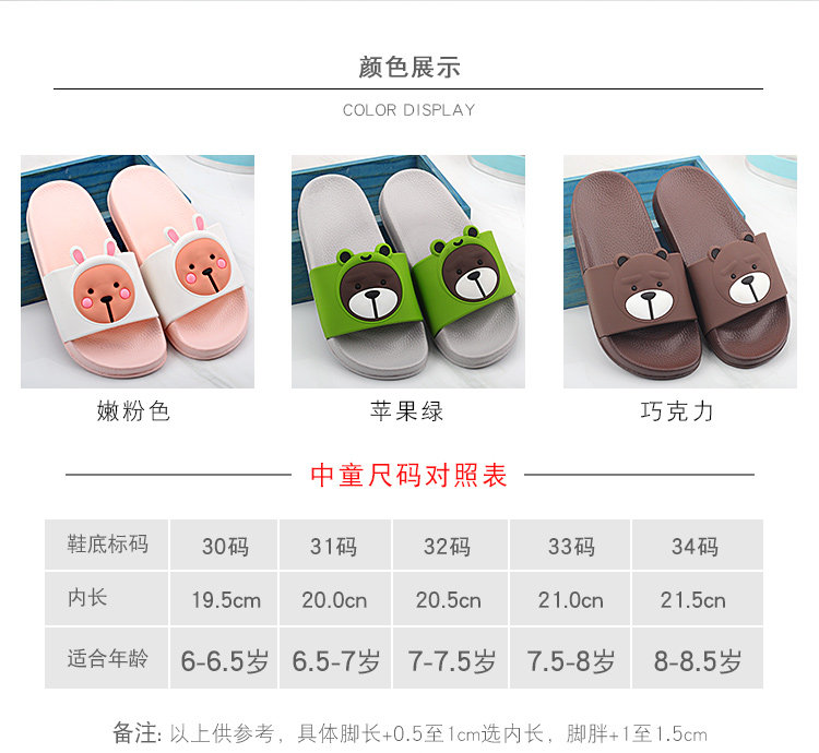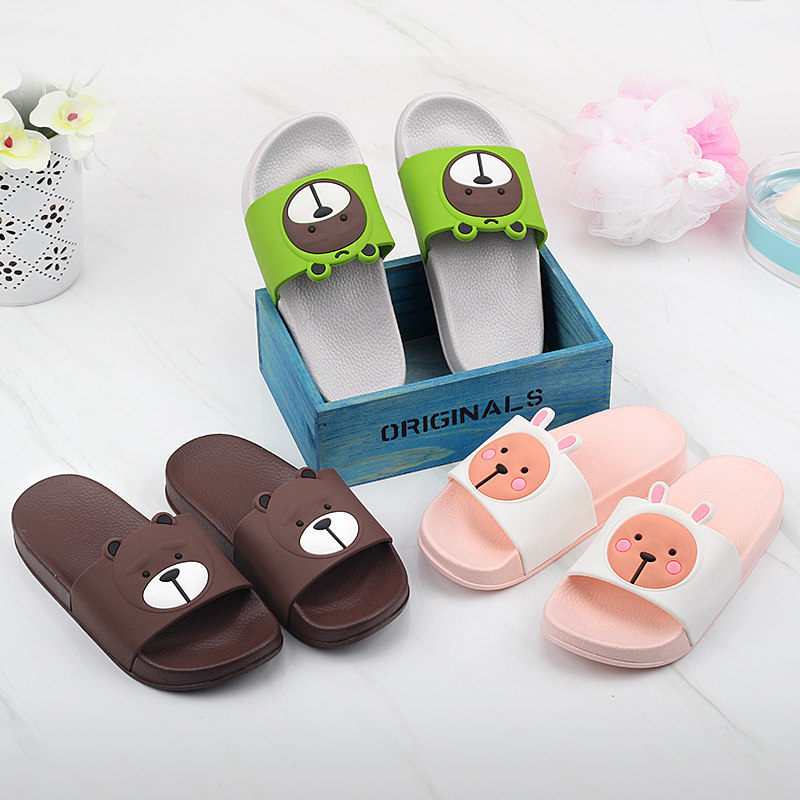 Детские нескользящие летние тапочки для девочек для мальчиков, с медвежатами