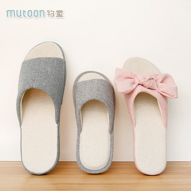 牧童 Детские нескользящие тапочки для мальчиков, семейный стиль, из хлопка и льна