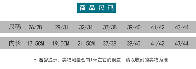 | Размер обуви: | Внутренняя длина 17,5 см 26/28, Внутренняя длина 19,5 см 29/31, Внутренняя длина 21,5 см 32/34, Внутренняя длина 23 см 35/36, 37/38, 39/40, 41/42, 43/44 |
