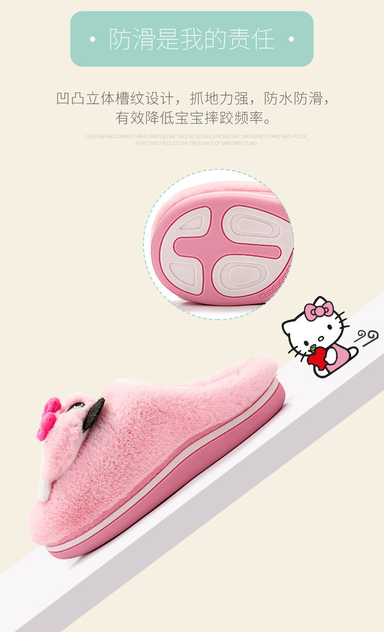 Hello Kitty, детские зимние милые нескользящие тапочки, подходят для подростков, семейный стиль
