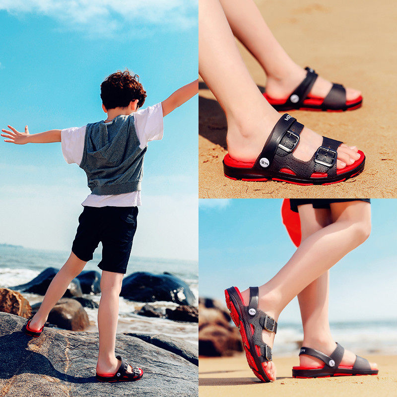 Детские летние тапочки, сандалии для мальчиков, нескользящая пляжная обувь, слайдеры, мягкая подошва, подходит для подростков