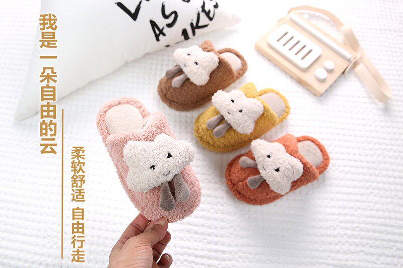 Детские зимние удерживающие тепло мультяшные тапочки, мягкая подошва