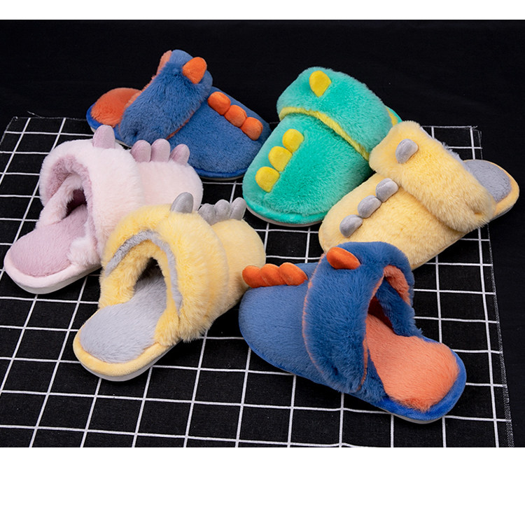 Детский динозавр, зимние мультяшные модные плюшевые удерживающие тепло детские тапочки, коллекция 2021