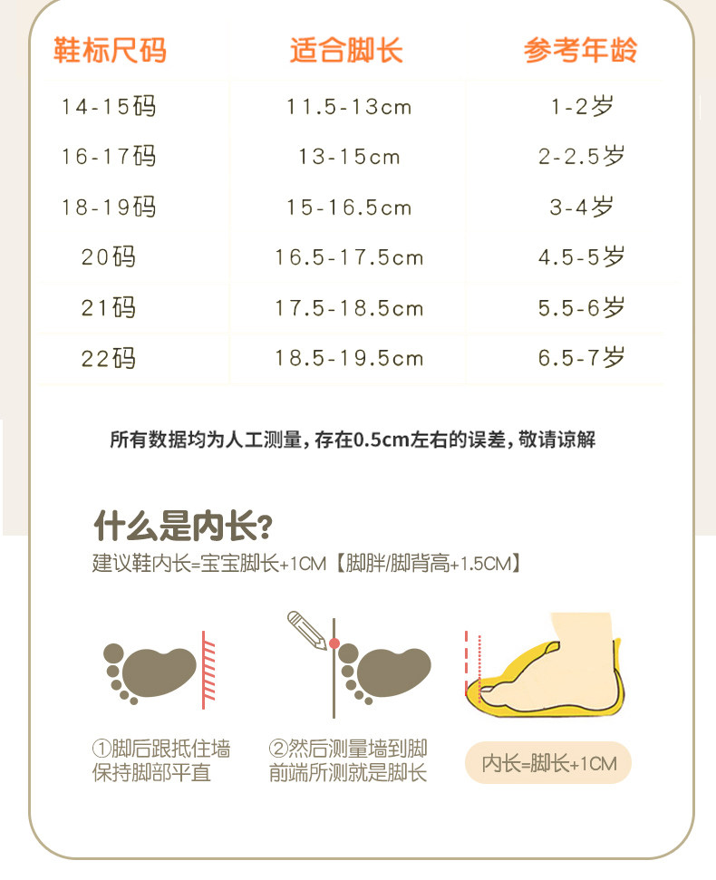 | Размер обуви: | Размер 20 подходит на ногу длиной 16,5-17,5 см без лямок., Размер 21 подходит на ногу длиной 17,5-18,5 см без лямок., Размер 22 подходит на ногу длиной 18,5-19,5 см без лямок., Размер 16-17 подходит на ногу длиной 13-15 см с лямками., Размер 18-19 подходит на ногу длиной 15-16,5 см без лямок., Размер 14-15 подходит на ногу длиной 11,5-13 см с лямками. |