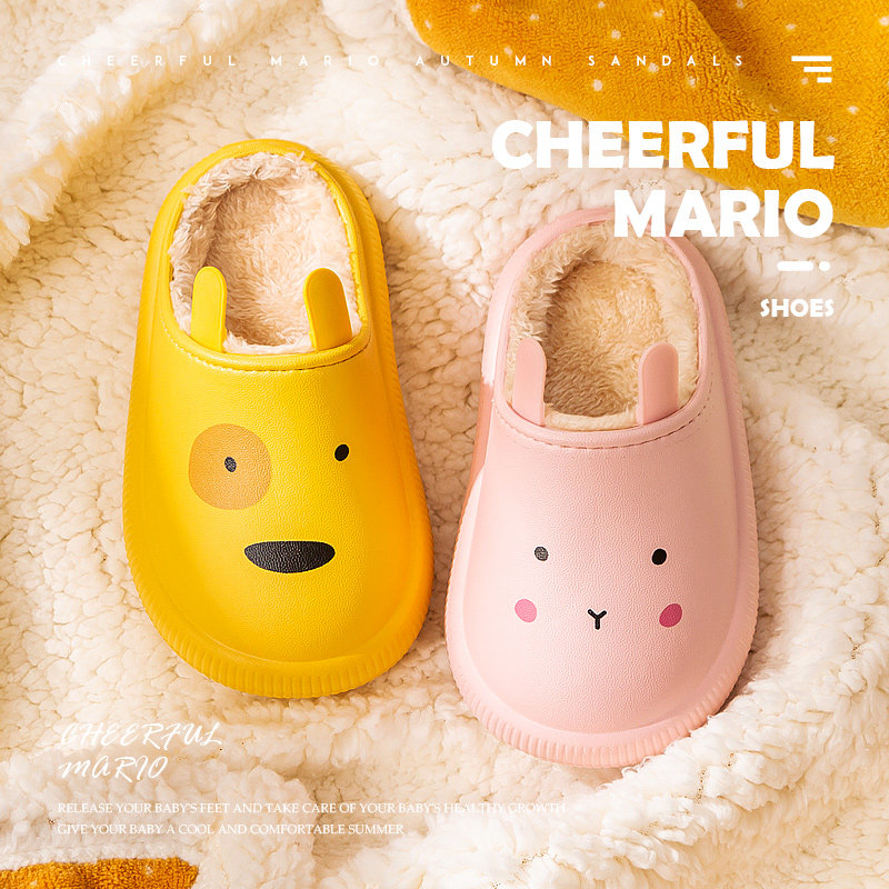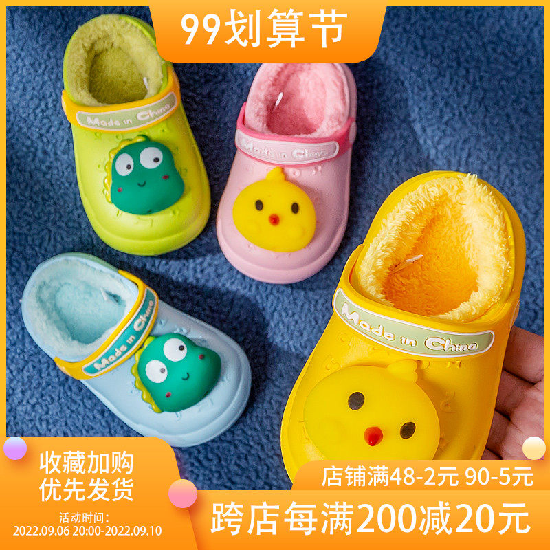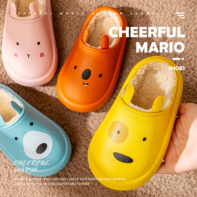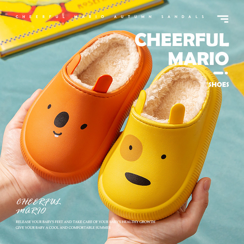 Детские демисезонные мультяшные милые нескользящие удерживающие тепло тапочки для мальчиков