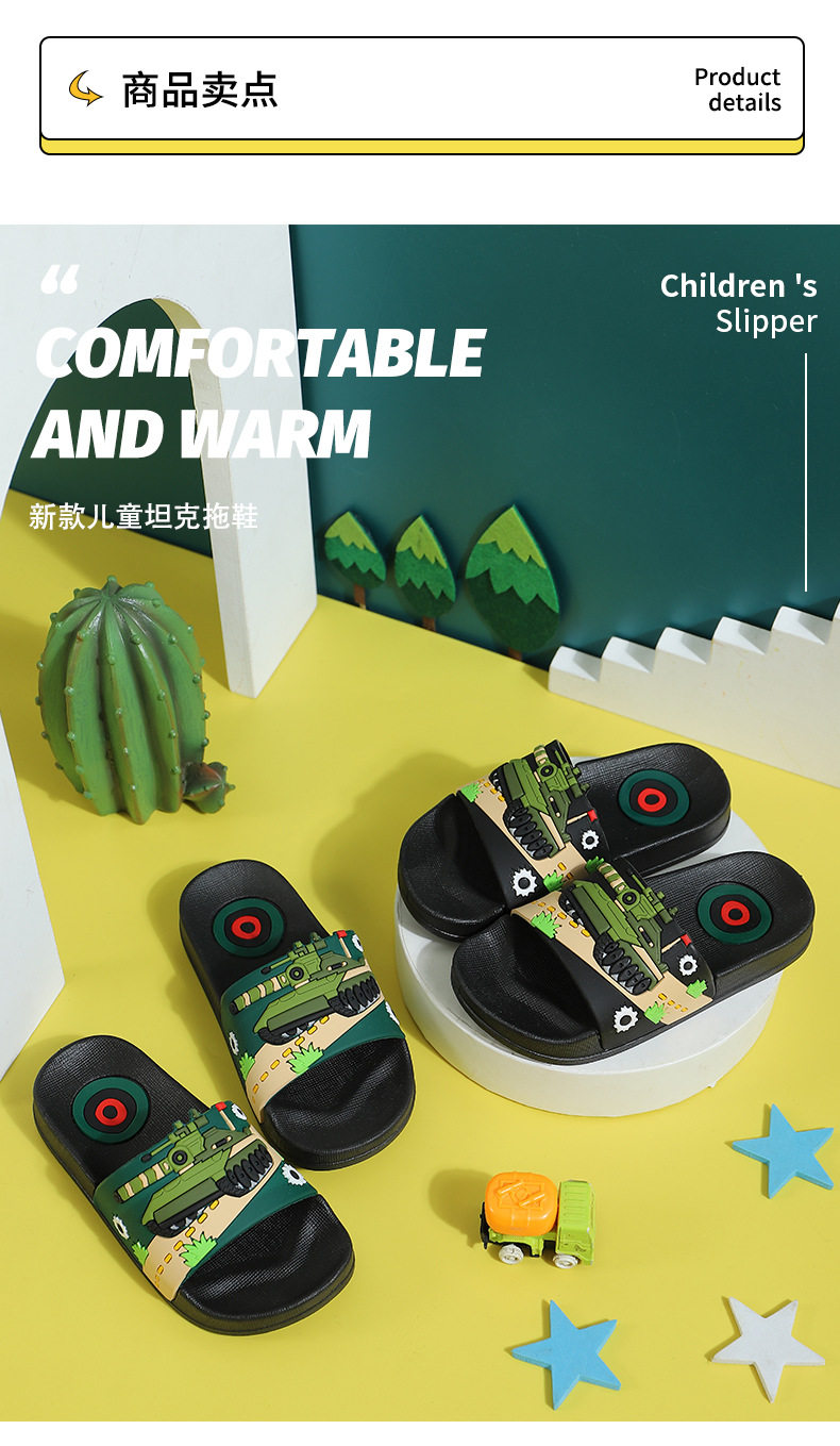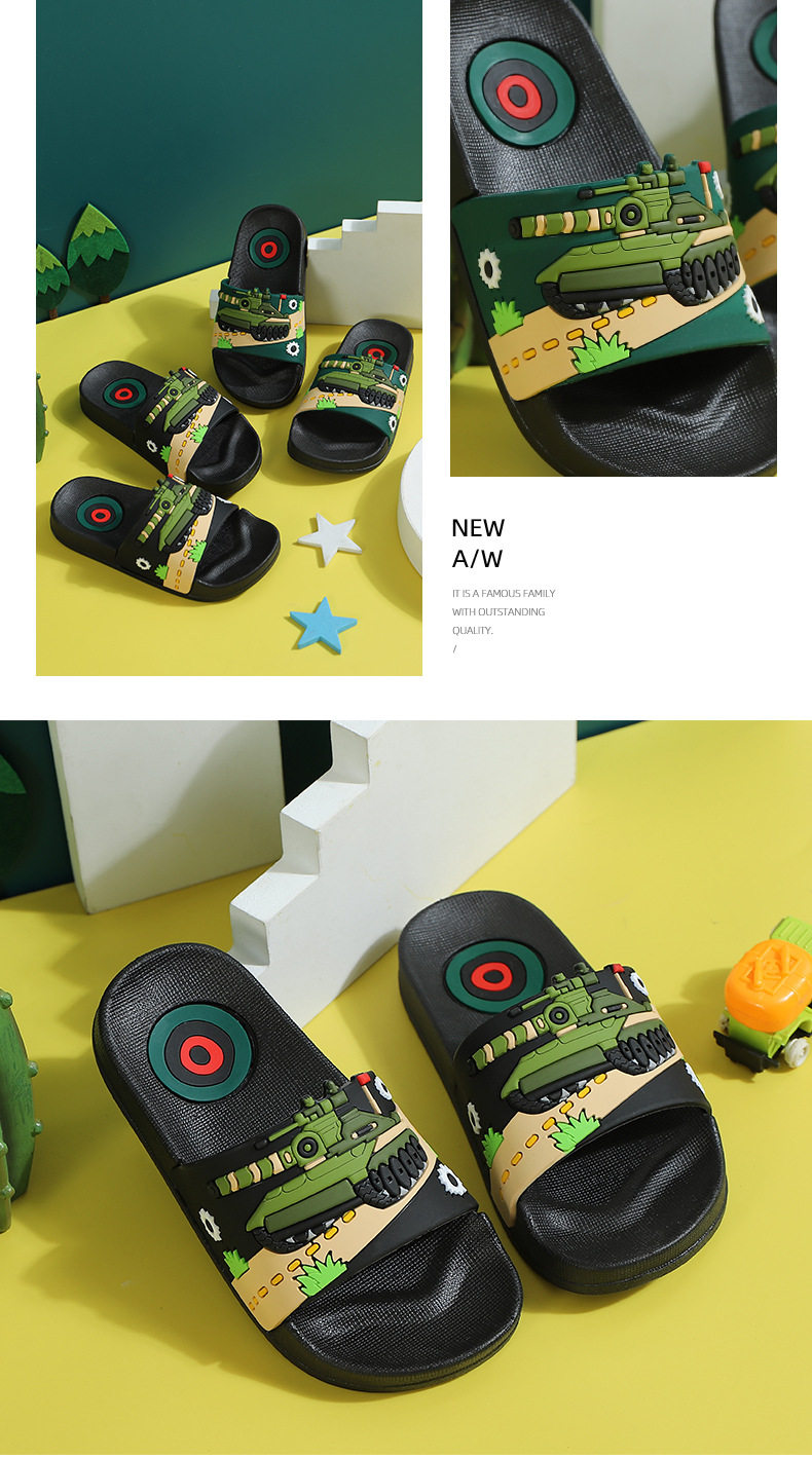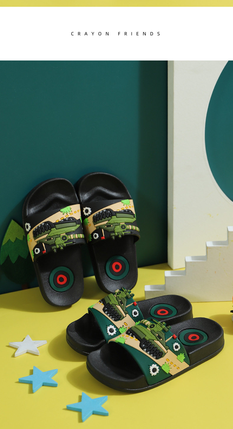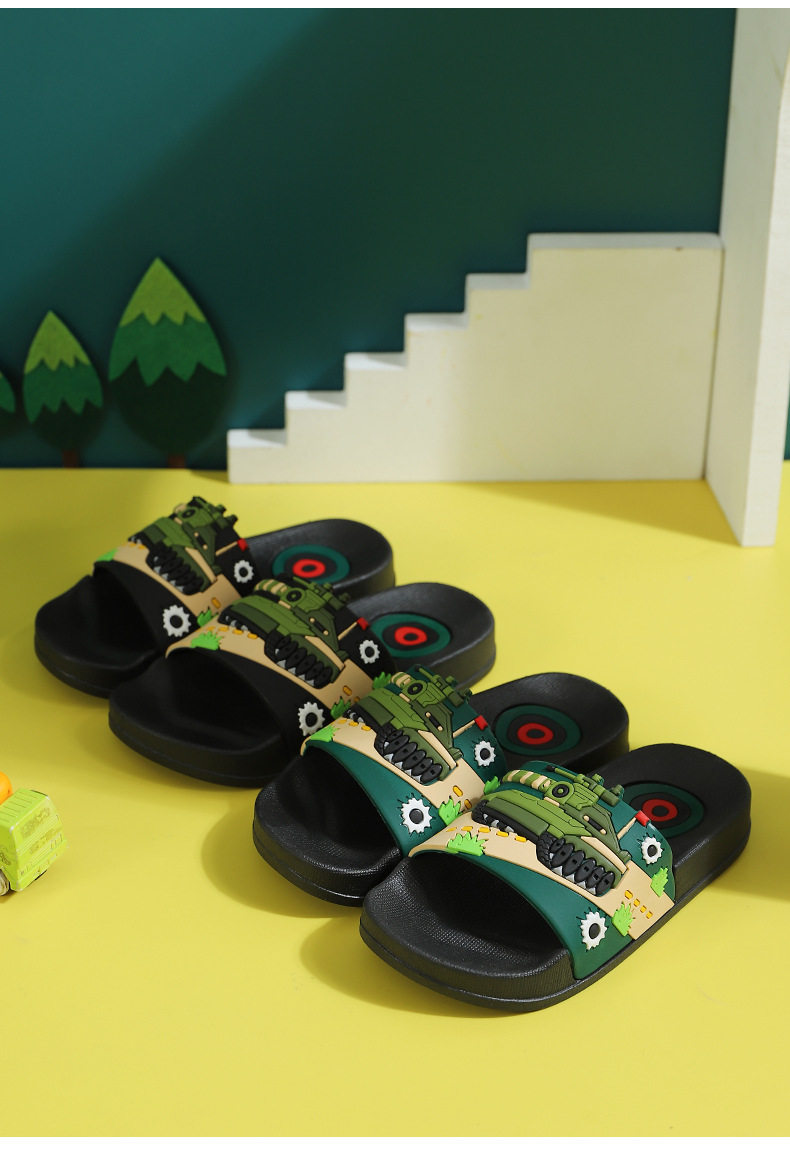 Детский танк, нескользящие мультяшные детские тапочки для мальчиков для ванны, мягкая подошва, подходит для подростков