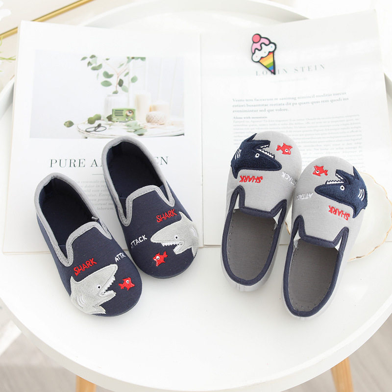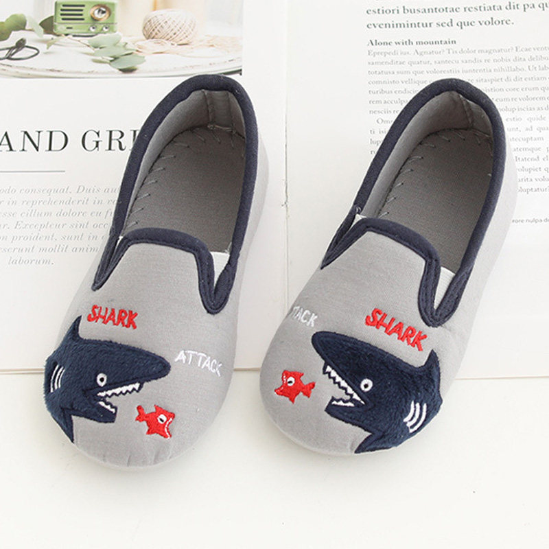 Детские тапочки для мальчиков, мультяшная детская нескользящая акула для детского сада