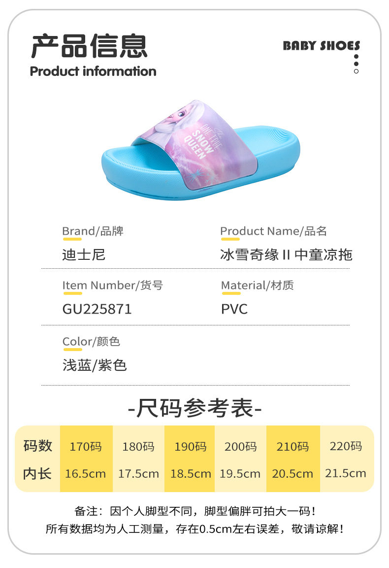 Дисней, детские летние нескользящие тапочки, «Холодное сердце»
