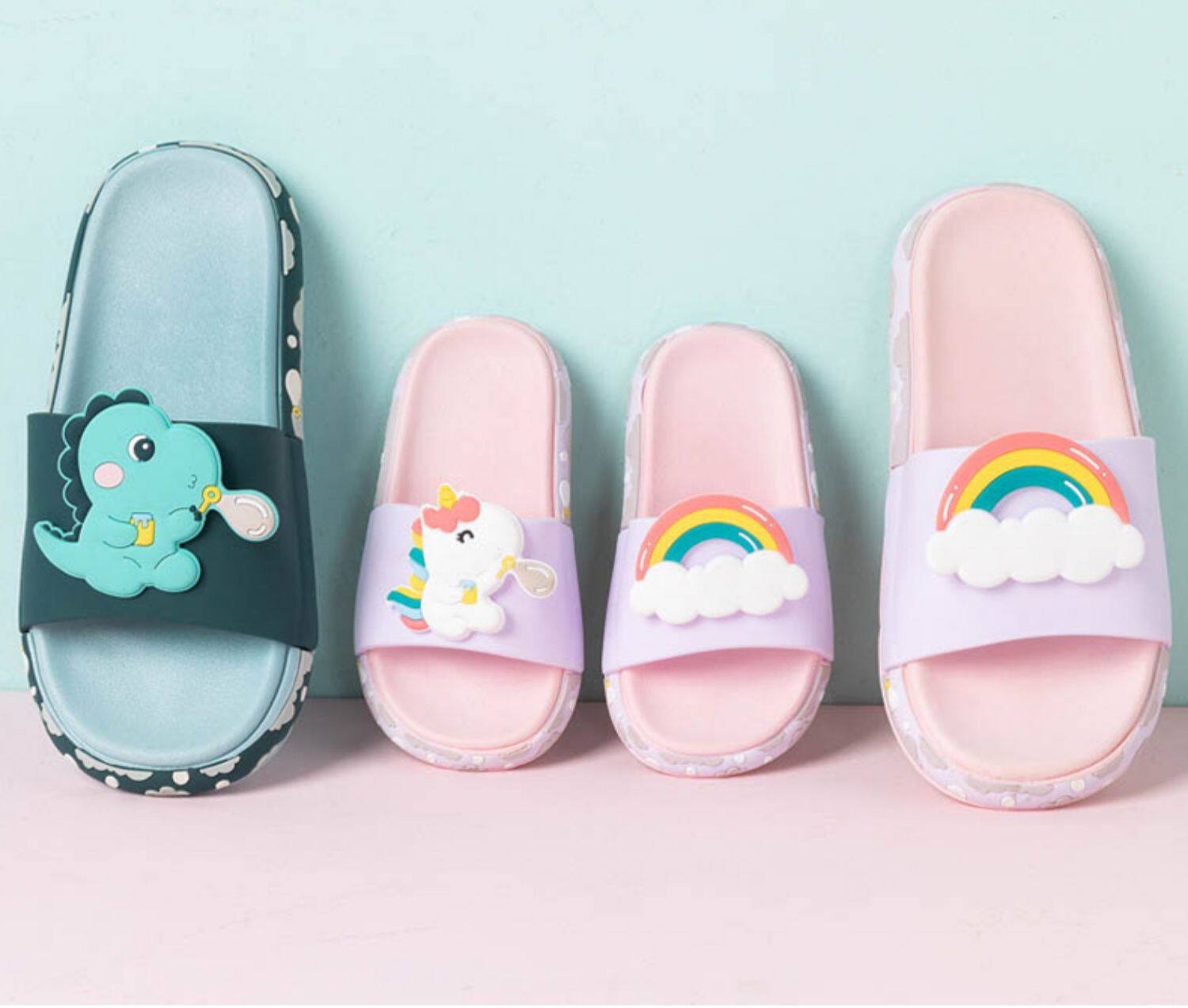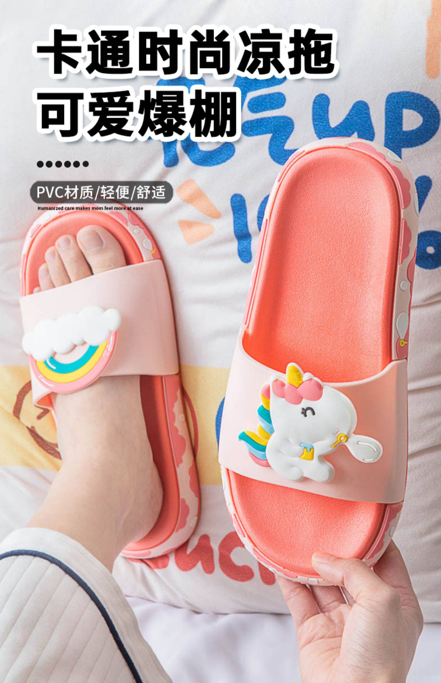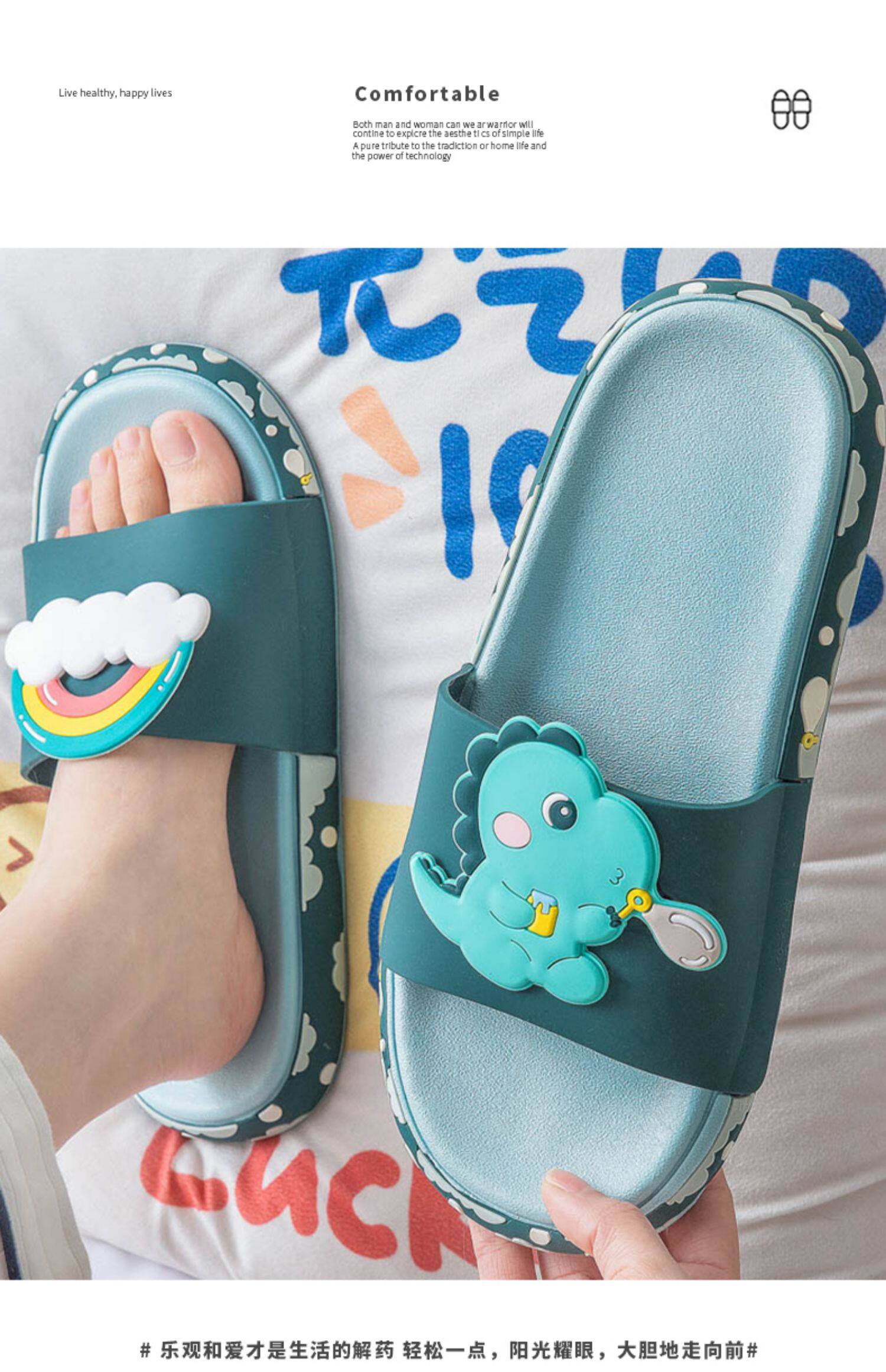 Летние детские нескользящие мультяшные тапочки, семейный стиль