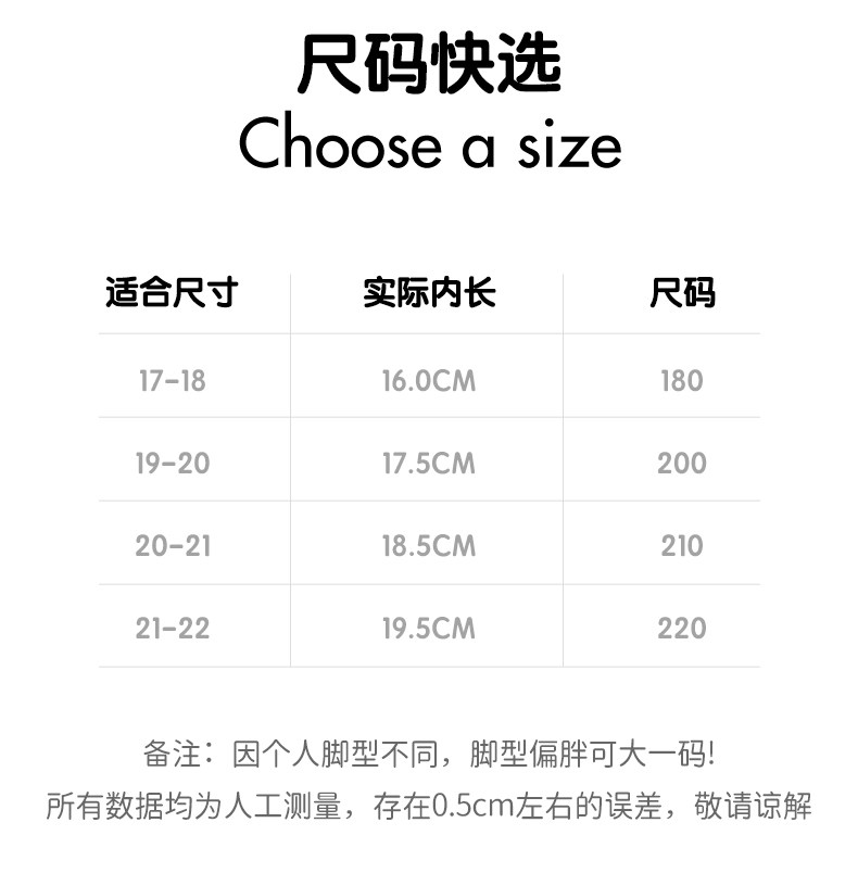 | Размер обуви: | 180 ярдов [внутренняя длина 16,0 см], 200 ярдов [17,5 см внутри], 210 Код [внутренняя длина 18,5 см], 220 Код [19,5 см внутри] |
