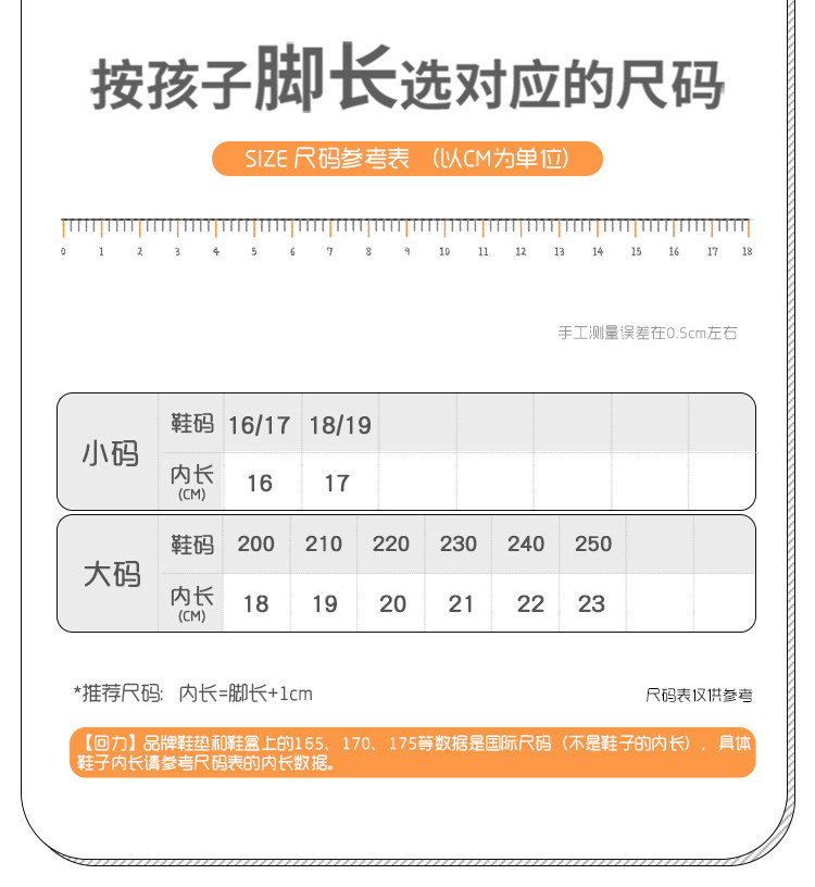 | Размер обуви: | 16/17 (22/23 ярдов) по длине 16см, 18/19 (24/25 ярдов) длина 17 см., 200 (26/27 ярдов) длиной 18 см., 210 (28/29 ярдов) длина 19 см., 220 (30/31 ярдов) длиной 20 см в длину, 230 (32/33 ярдов) по длине 21 см., 240 (34/35 ярдов) длина 22 см., 250 (36/37 ярдов) длина 23 см., 260 (38/39 ярдов) по длине 24 см. |