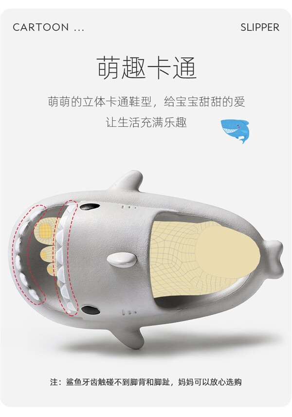 Мультяшные детские тапочки, летняя нескользящая акула для ванны