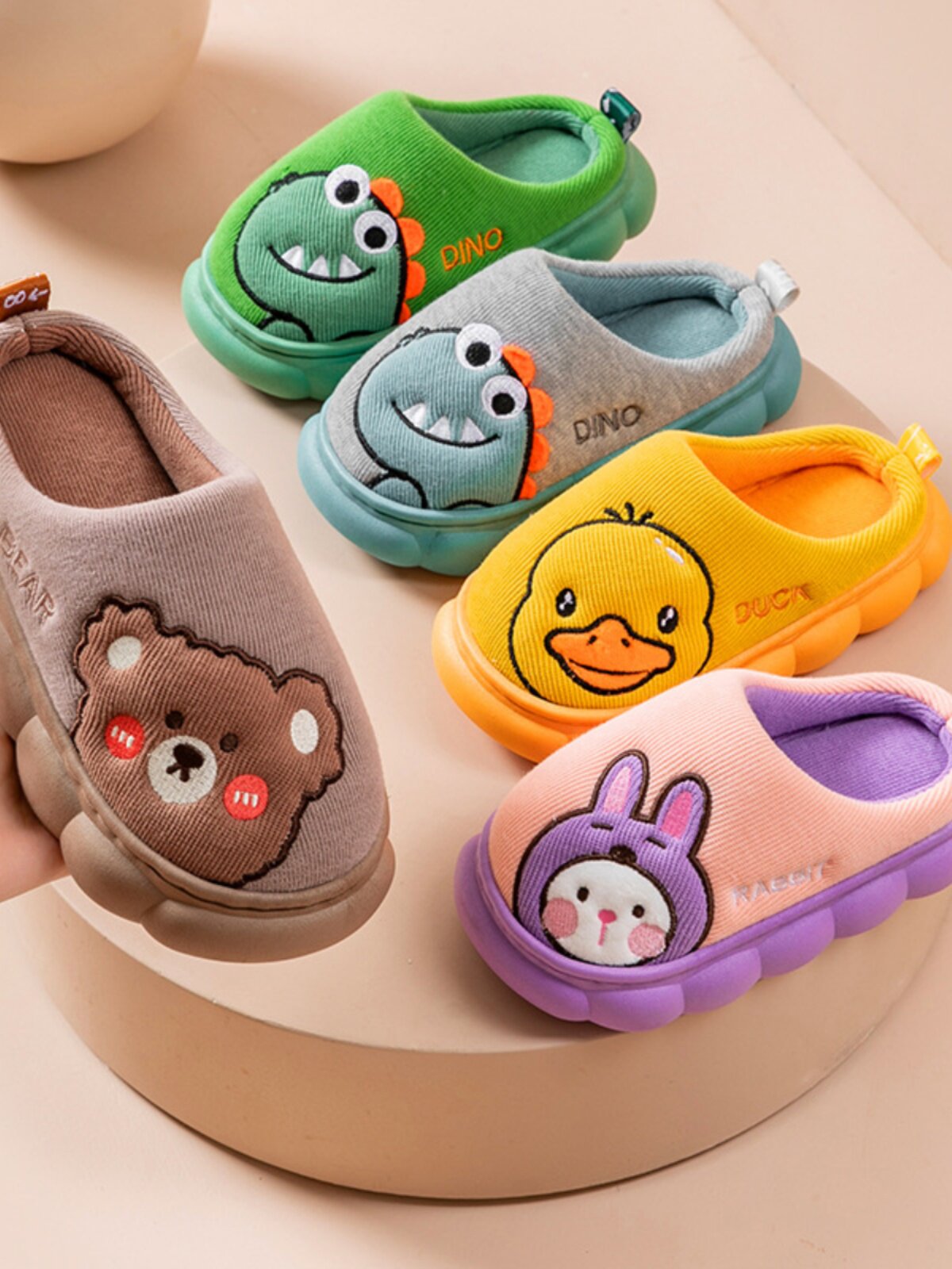 | Цвет: | Зеленый динозавр, Серый (динозавр), Желтый (утка), Розовый (маленький кролик), Хаки (медведь) |