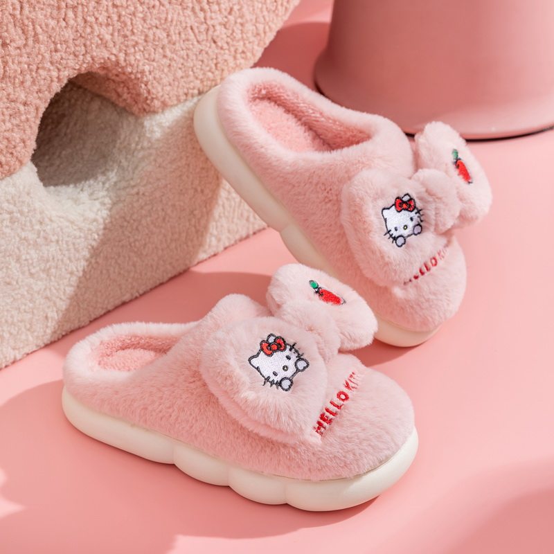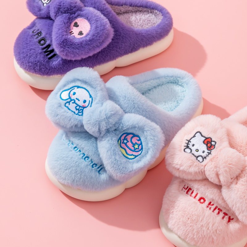 Sanrio, милые зимние мультяшные удерживающие тепло детские тапочки, семейный стиль