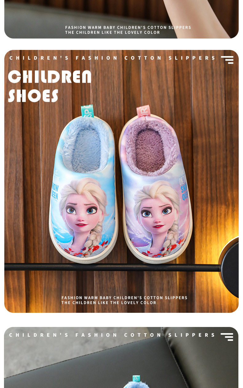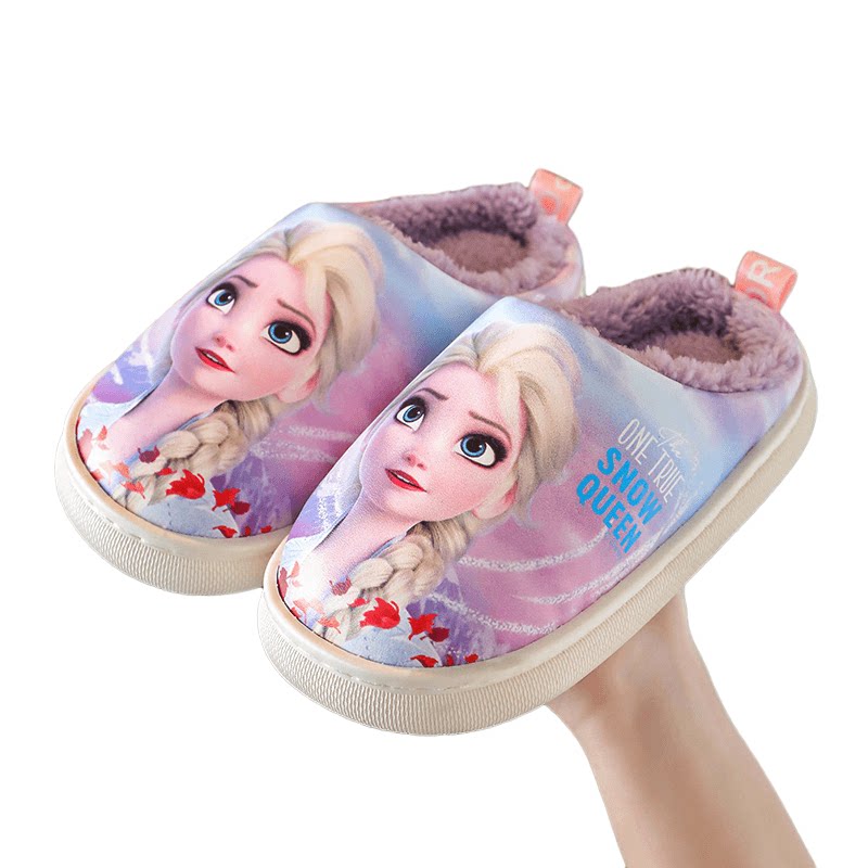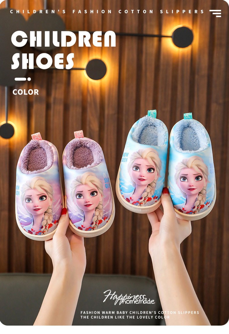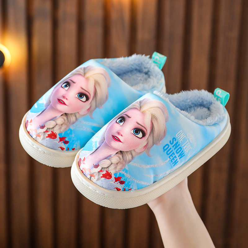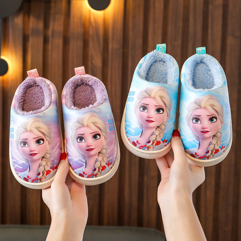 Детские непромокаемые хлопковые тапочки, меховая обувь для девочек, зимняя домашняя домашняя хлопковая обувь для девочек, нескользящая домашняя обувь принцессы