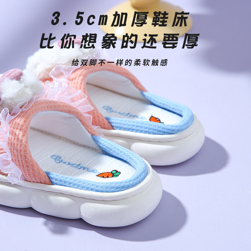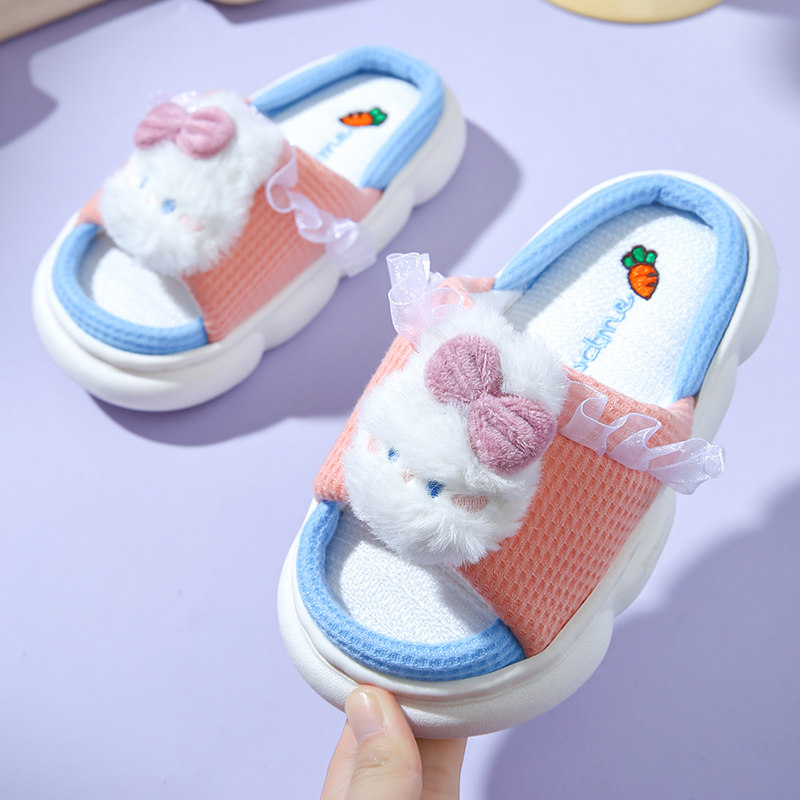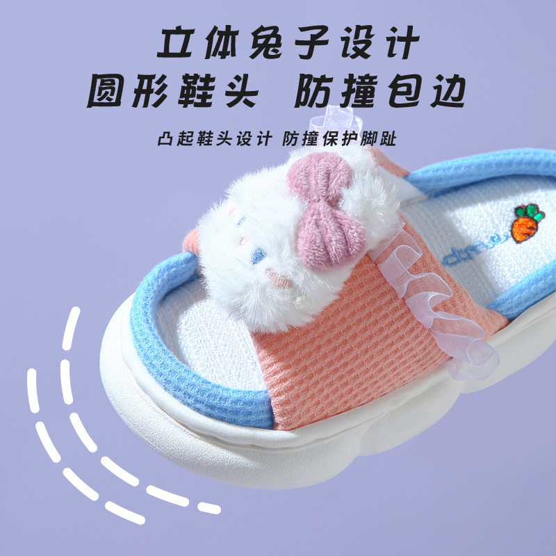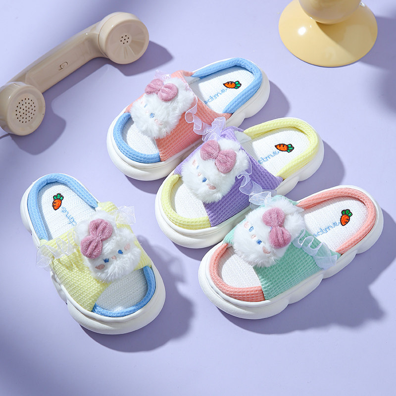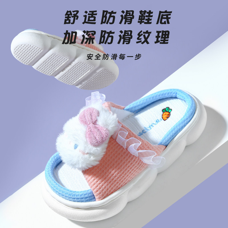 Детские дышащие нескользящие милые тапочки, мягкая подошва, из хлопка и льна