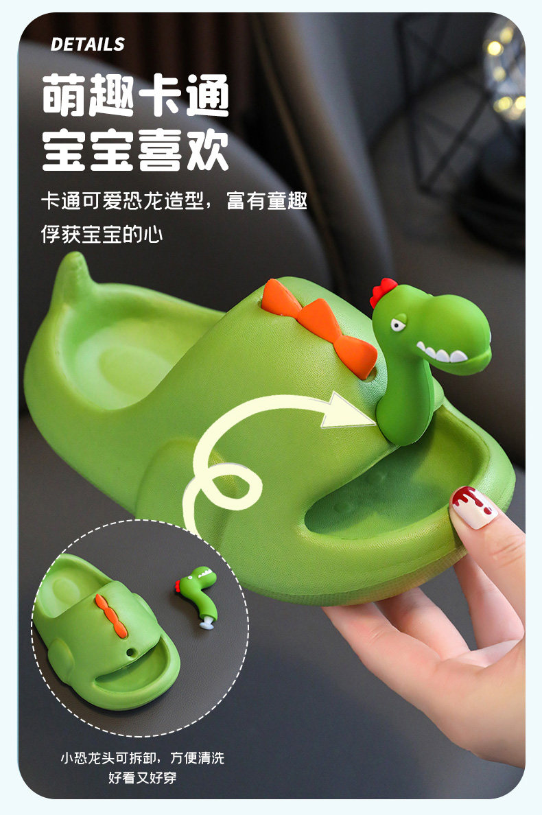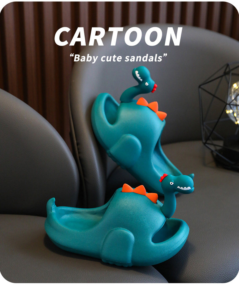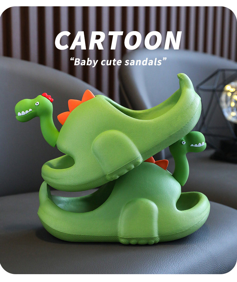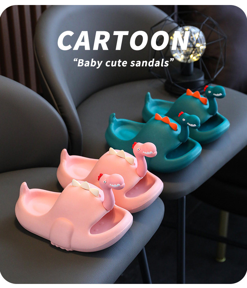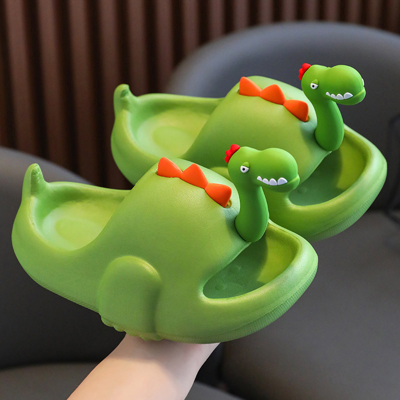 Детские летние тапочки для мальчиков, мультяшный нескользящий пляжный динозавр, семейный стиль