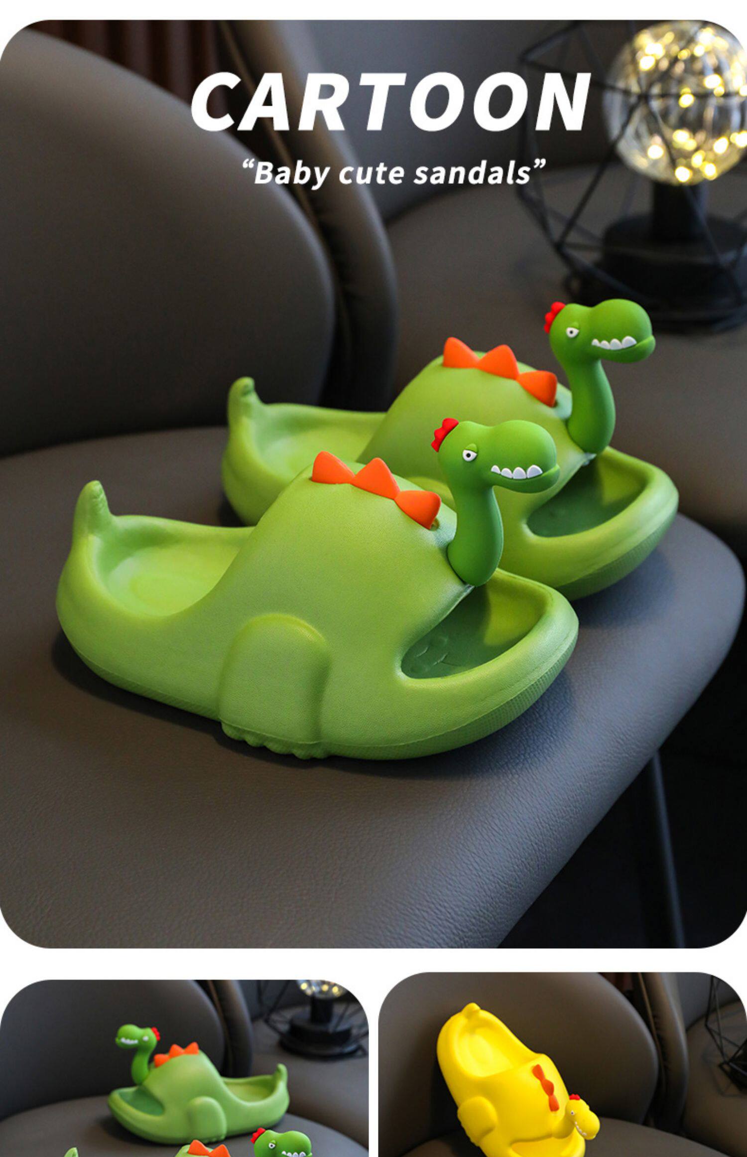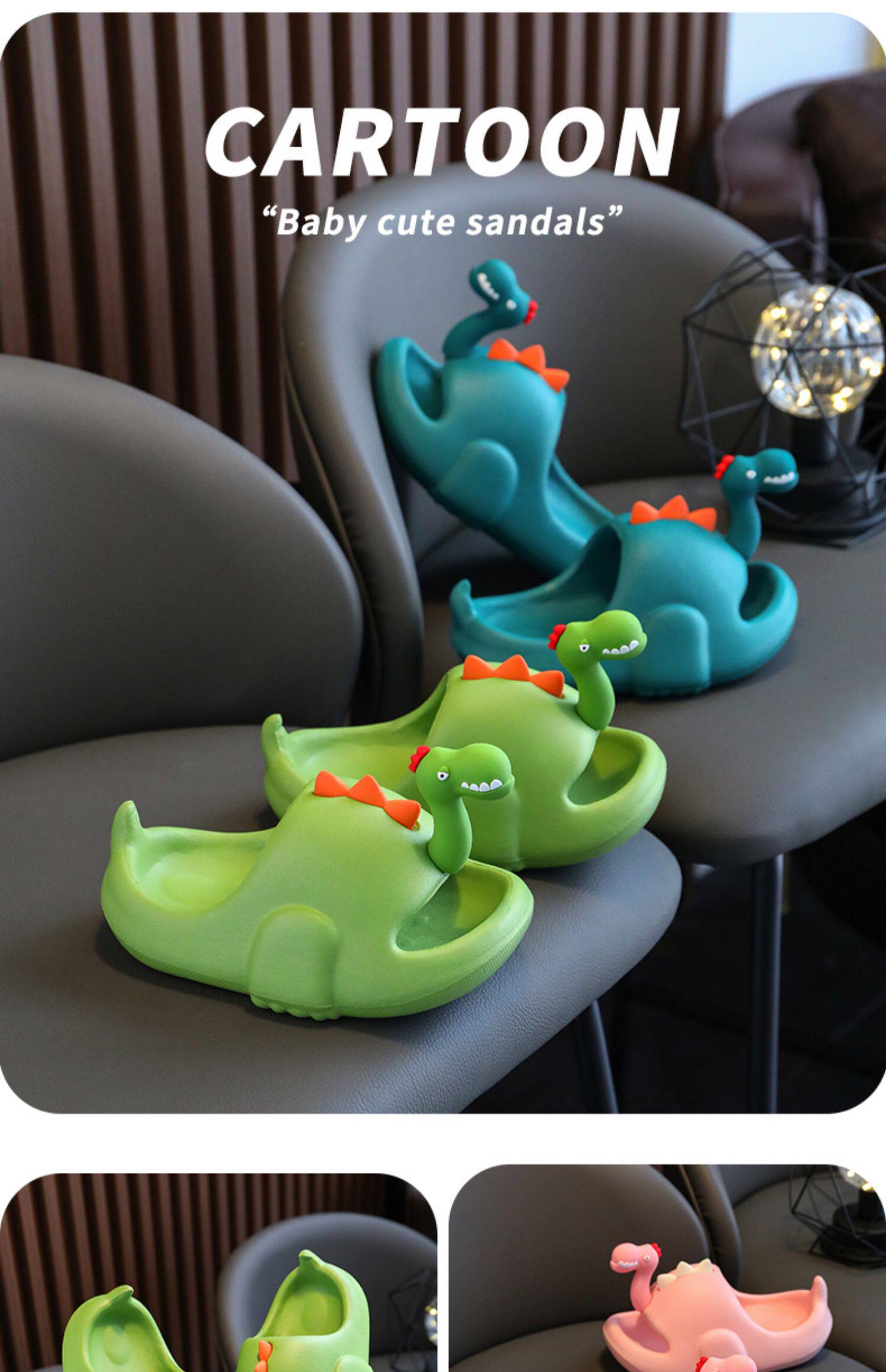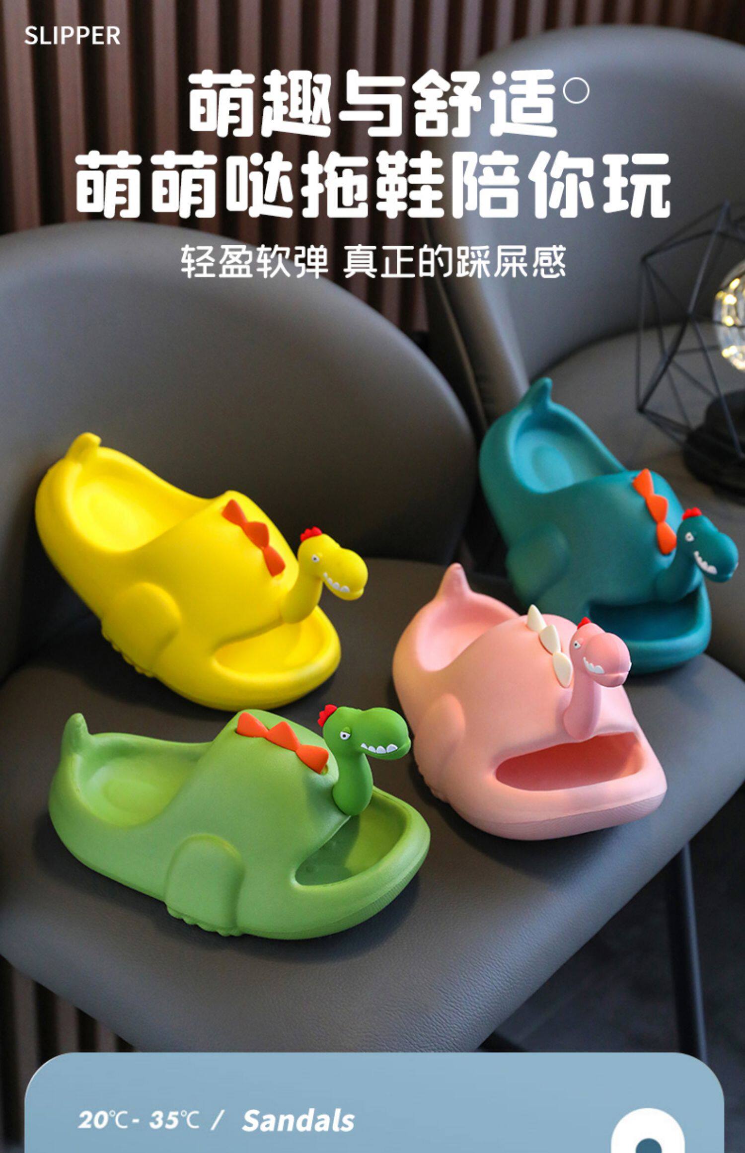 Детские летние тапочки для мальчиков, мультяшный нескользящий пляжный динозавр, семейный стиль