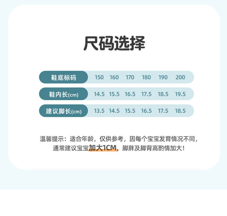 | Размер обуви: | 160 мм, внутренняя длина 15 см, размер около 22-23., 170 мм, внутренняя длина 16 см, размер около 24-25., 180 мм, внутренняя длина 17 см, размер около 26-27., 190 мм, внутренняя длина 18 см, размер около 28-29., 200 мм, внутренняя длина 19 см, размер около 30-31., 210 мм, внутренняя длина 20 см, размер около 32-33., 220 мм, внутренняя длина 21 см, размер около 34-35., 35/36 Код для взрослых, 37/38 Код для взрослых, 39/40 Код для взрослых |