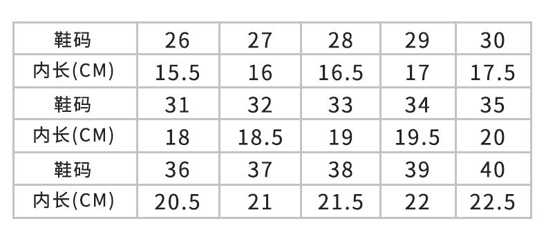 | Размер обуви: | Размер 26, внутренняя длина 15,5 см, возраст около 2,5 лет., 27 ярдов 16см около 3 лет, Размер 28, внутренняя длина 16,5 см, возраст около 3,5 лет., Длина 29 ярдов 17 см - около 4 лет, Размер 30, внутренняя длина 17,5 см, возраст около 4,5 лет., 31 ярды 18 см - около 5 лет, Размер 32, внутренняя длина 18,5 см, возраст около 5,5 лет., 33 ярда длиной 19 см - около 6 лет, Размер 34, внутренняя длина 19,5 см, возраст около 6,5 лет., 35 ярдов 20 см - около 7 лет, Размер 36, внутренняя длина 20,5 см, возраст около 7,5 лет., 37 ярдов 20 см - около 7 лет, Размер 38, внутренняя длина 21,5 см, возраст около 9 лет., Размер 39, внутренняя длина 22см, возраст около 10 лет., 40, 11-12 лет |