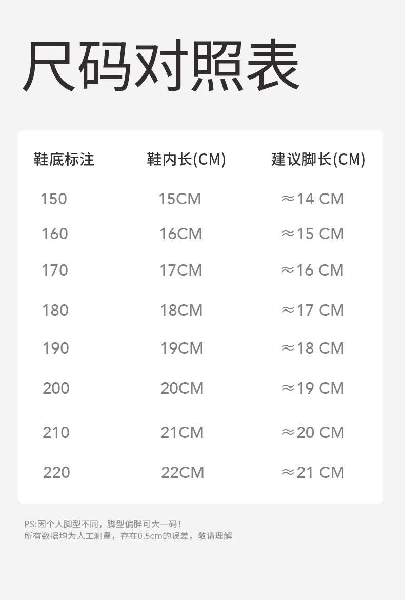 | Размер обуви: | Размер 13, внутренняя длина 13 см [подходит на ногу длиной 12 см], Размер 14, внутренняя длина 14 см [подходит на ногу длиной 13 см], Размер 15, внутренняя длина 15 см [подходит на ногу длиной 14 см], Размер 16, внутренняя длина 16 см [подходит на ногу длиной 15 см], Размер 17, внутренняя длина 17 см [подходит на ногу длиной 16 см], Размер 18, внутренняя длина 18 см [подходит на ногу длиной 17 см], Размер 19, внутренняя длина 19 см [подходит на ногу длиной 18 см], Размер 20, внутренняя длина 20 см [подходит на ногу длиной 19 см], 21 коды длиной 21 см [подходит для длины футов 20 см], Размер 22, внутренняя длина 22 см [подходит на ногу длиной 21 см] |