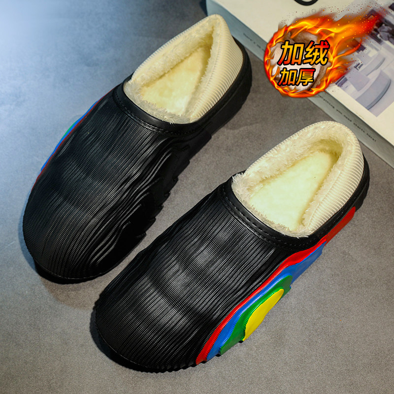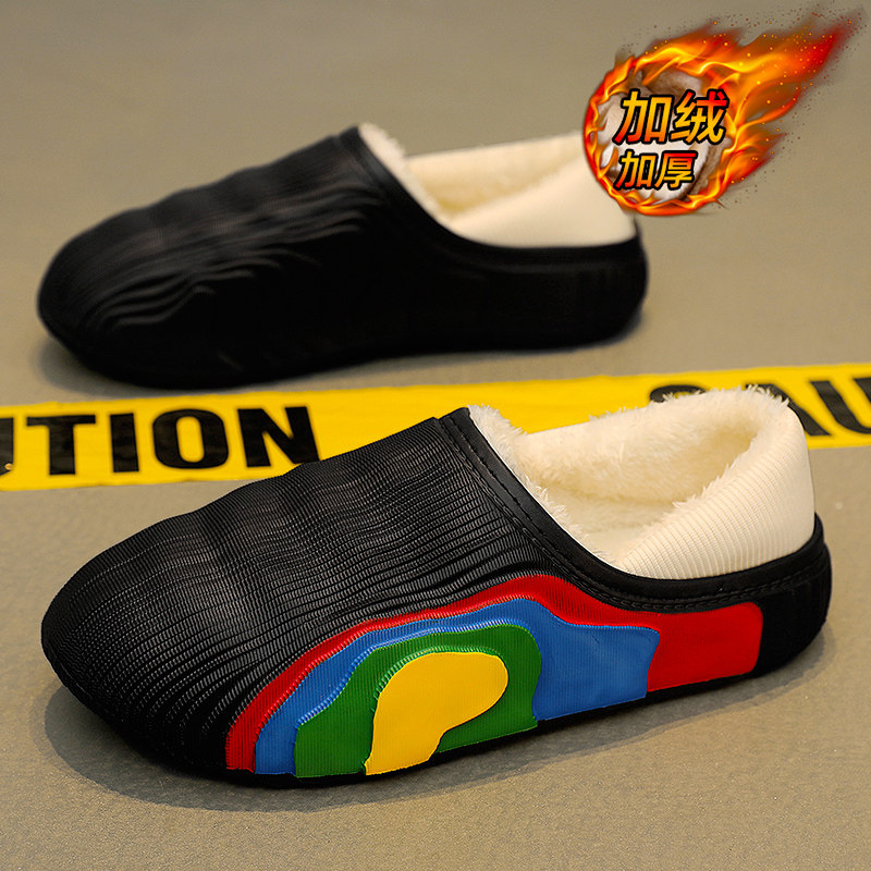 Детские зимние черные удерживающие тепло нескользящие флисовые тапочки для мальчиков, подходят для подростков