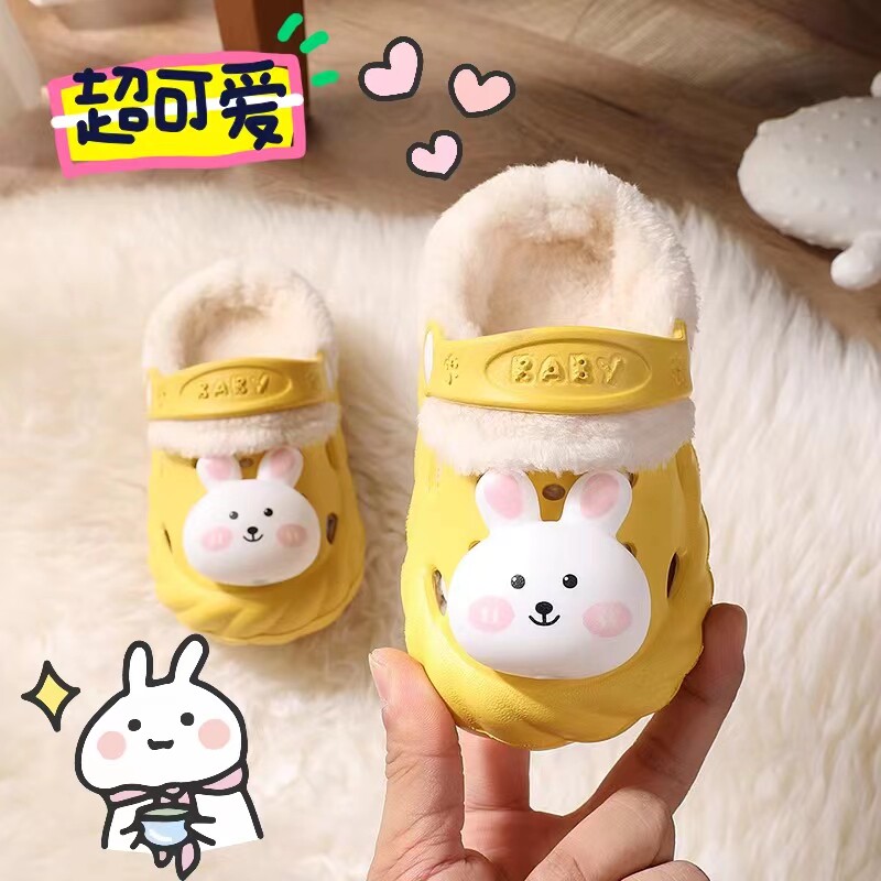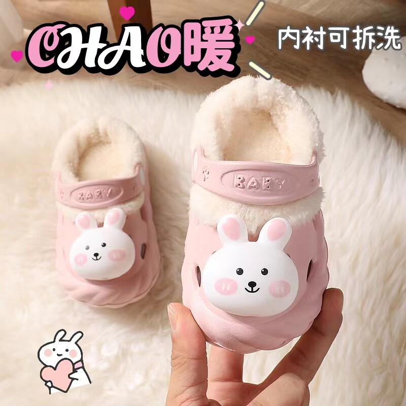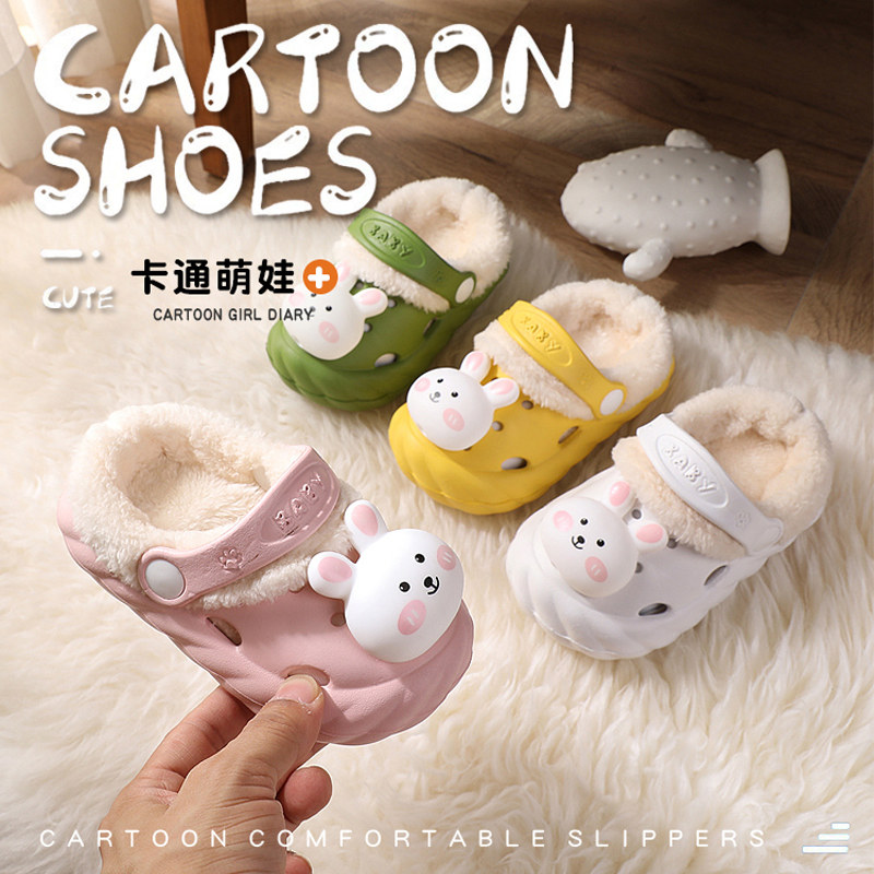 Милый детский кролик, детские демисезонные нескользящие удерживающие тепло тапочки для девочек