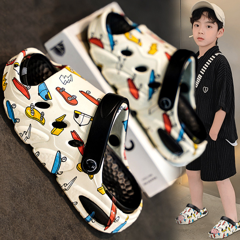 Летние тапочки для мальчиков, детские нескользящие дезодорированные пляжные слайдеры, подходит для подростков