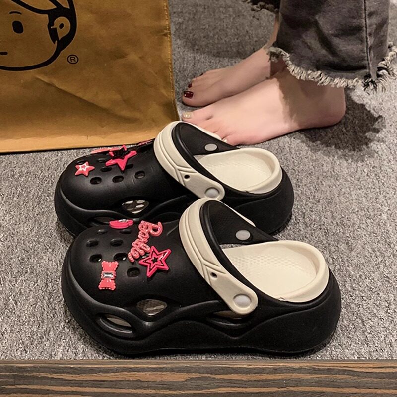 Новинка лета 2024 года, детские тапочки с толстой подошвой Cross Crocs для девочек, сандалии Baotou для маленьких девочек