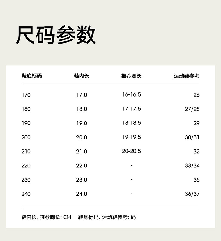 | Размер обуви: | Размер 26, внутренняя длина 17 см, рекомендуемая длина стопы 16 см., Размер 28, внутренняя длина 18 см, рекомендуемая длина стопы 17 см., Размер 30, внутренняя длина 19 см, рекомендуемая длина стопы 18 см., Размер 32, внутренняя длина 20 см, рекомендуемая длина стопы 19 см., Размер 34, внутренняя длина 21 см, рекомендуемая длина стопы 20 см., Размер 36, внутренняя длина 22 см, рекомендуемая длина стопы 21 см., Размер 38, внутренняя длина 23 см, рекомендуемая длина стопы 22 см., Размер 40, внутренняя длина 24 см, рекомендуемая длина стопы 23 см. |
