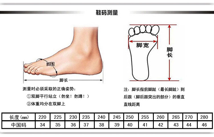 | Размер обуви: | 34 ярда/22 см, 22.5см, 36, 23см, 23.5см, 24.5см, 38, 24см, 40, 25см, 25.5см, 42 ярда/26 см., 26.5см, 44 ярда/27 см., 27.5см, 46 ярдов/28 см. |