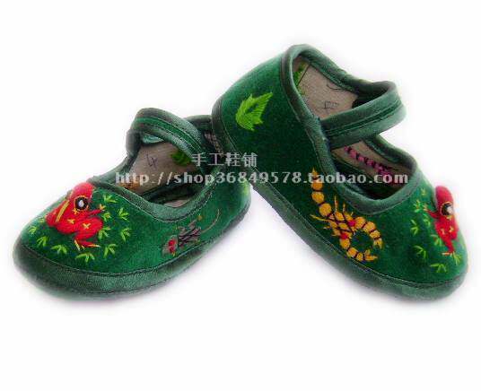 Изысканная вышивка, это редкое изделия из ручной работы.Ребенок ставит пять ядовитых ботинок до и после фестиваля лодок -драконов.