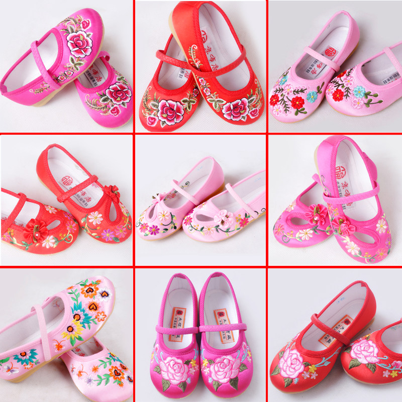 Продвижение старая пекинская ткань обувь девочка танцевальная обувь детская вышитая туфли детская ткань обувь для обуви принцессы говядина сухожили