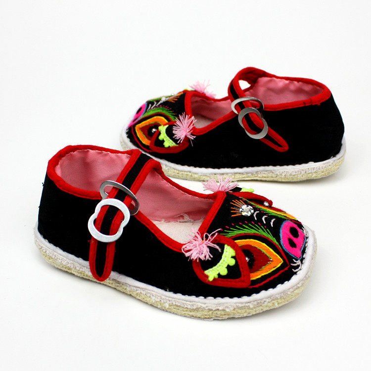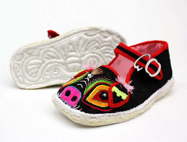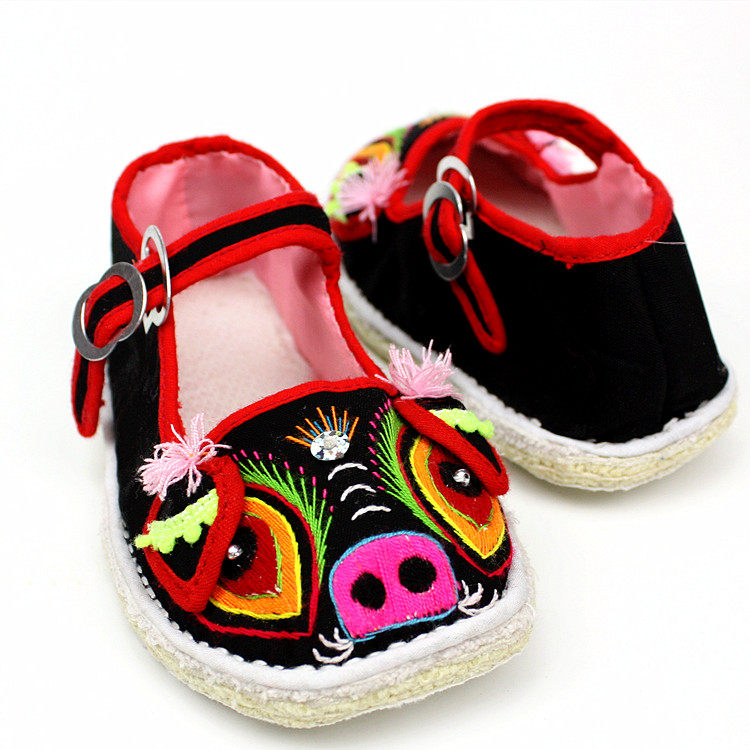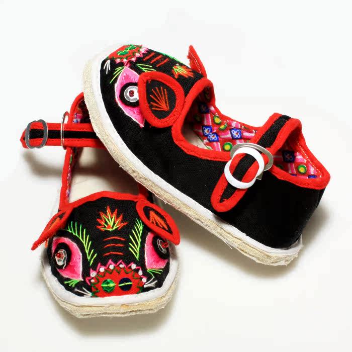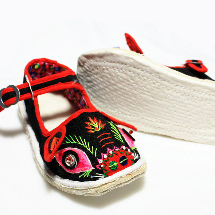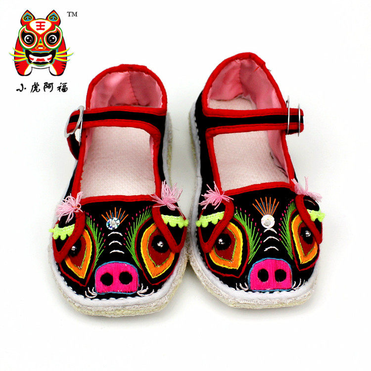 Маленькая тигрная тканевая обувь для ручной работы тысячи -слоя дна одиночная обувь детские вышитые туфли свиней богатые свиньи обувь