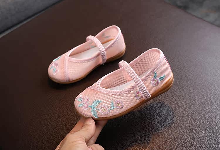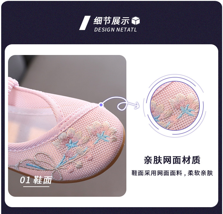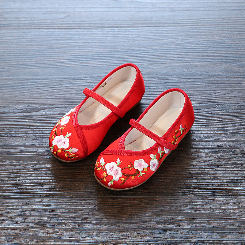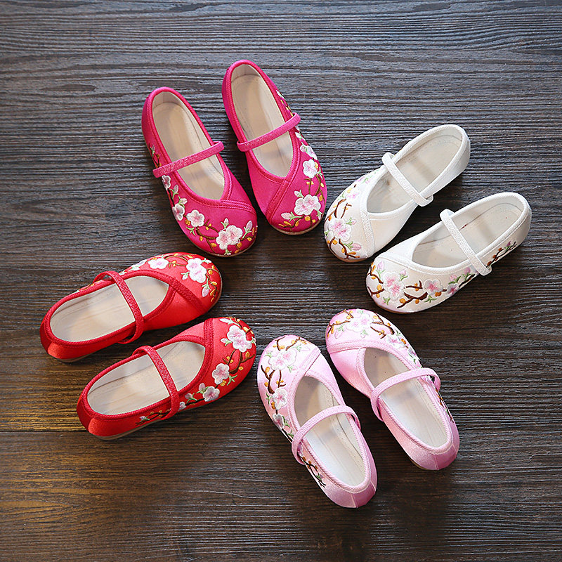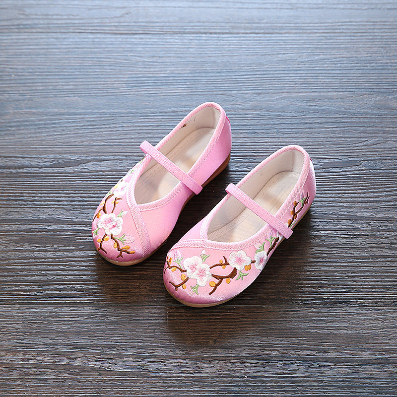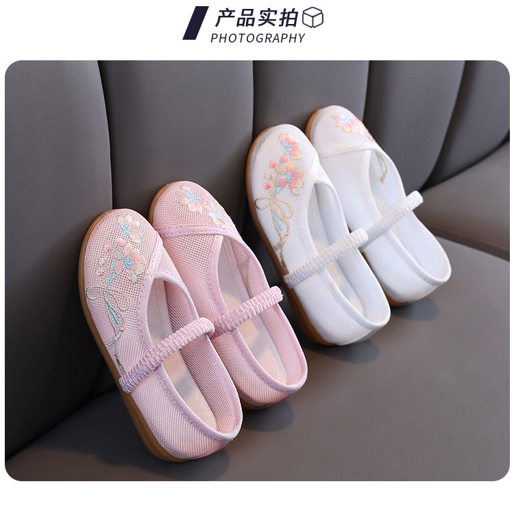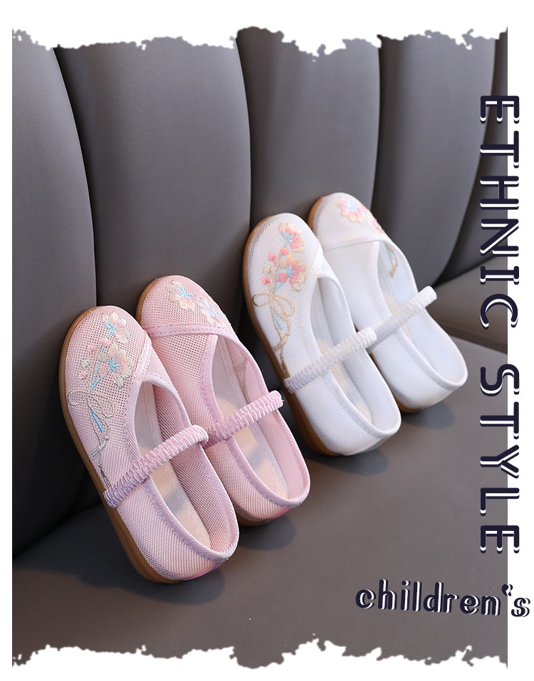 Девочки Hanfu Shoes 2024 Новая детская юбка Masao Национальная ветровая костюм Женская детская вышитая цветочная обувь этническая сеть ветра