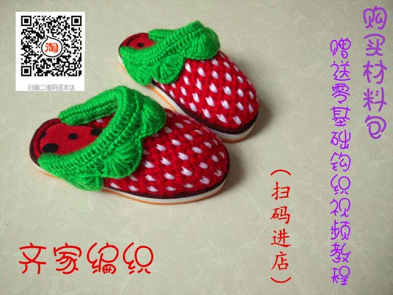 Плетеные тапочки, клубника, набор материалов, DIY