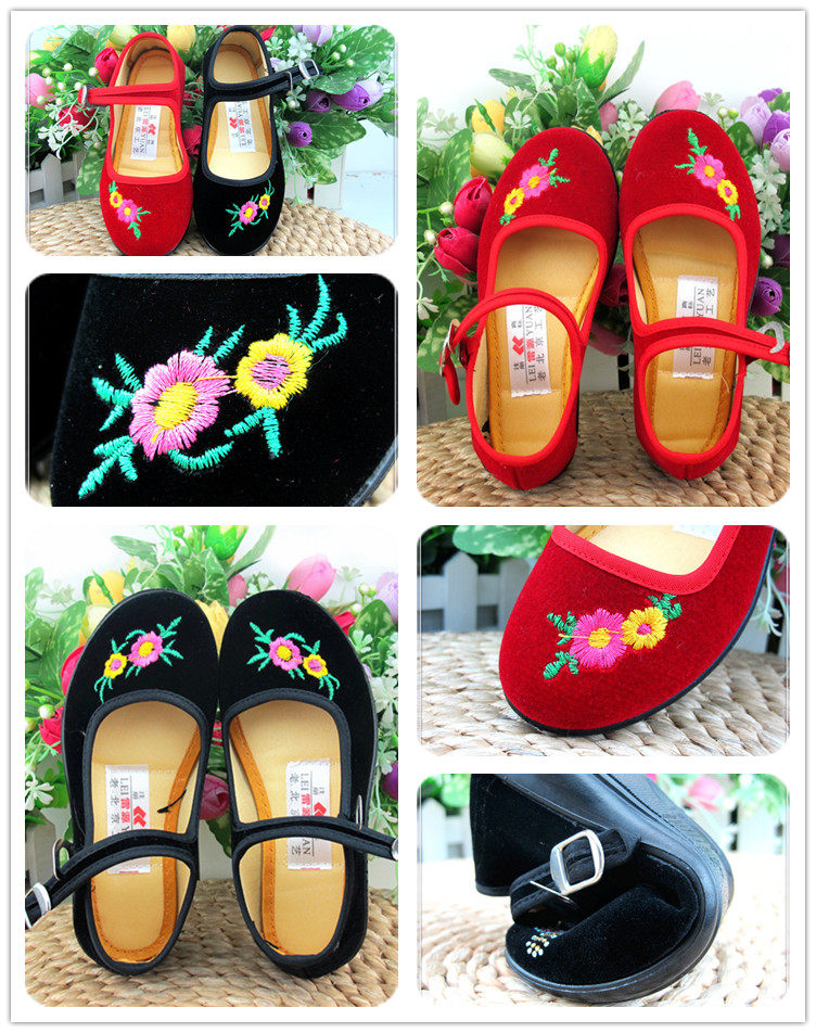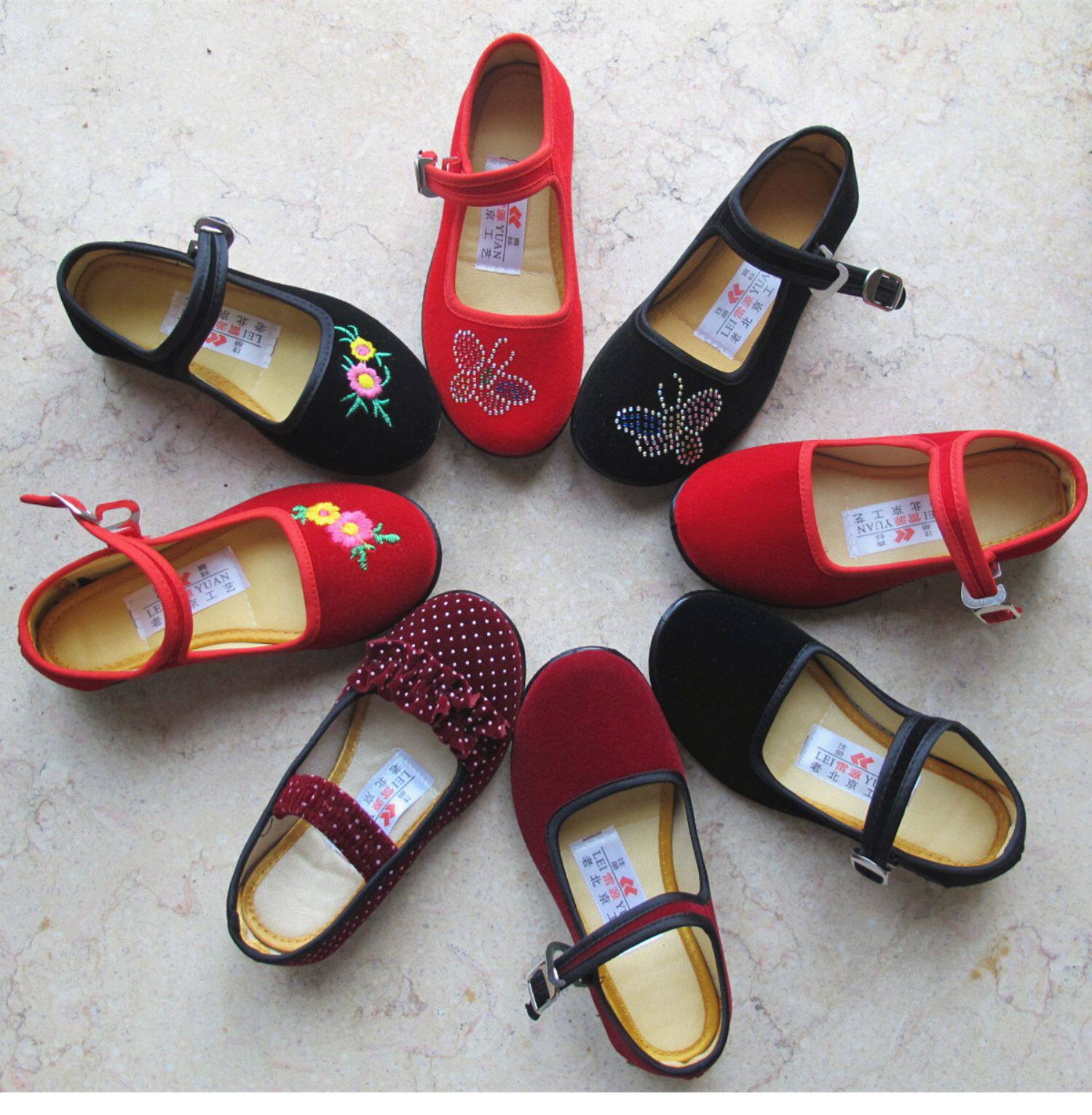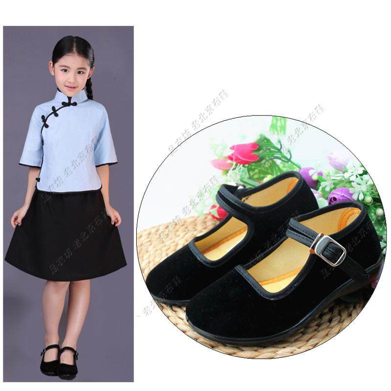老北京布鞋 Костюм для девочек, черные тканевые туфли, танцевальная обувь в Китайской Республике, обувь для выступлений в честь Дня защиты детей в стиле этнических меньшинств