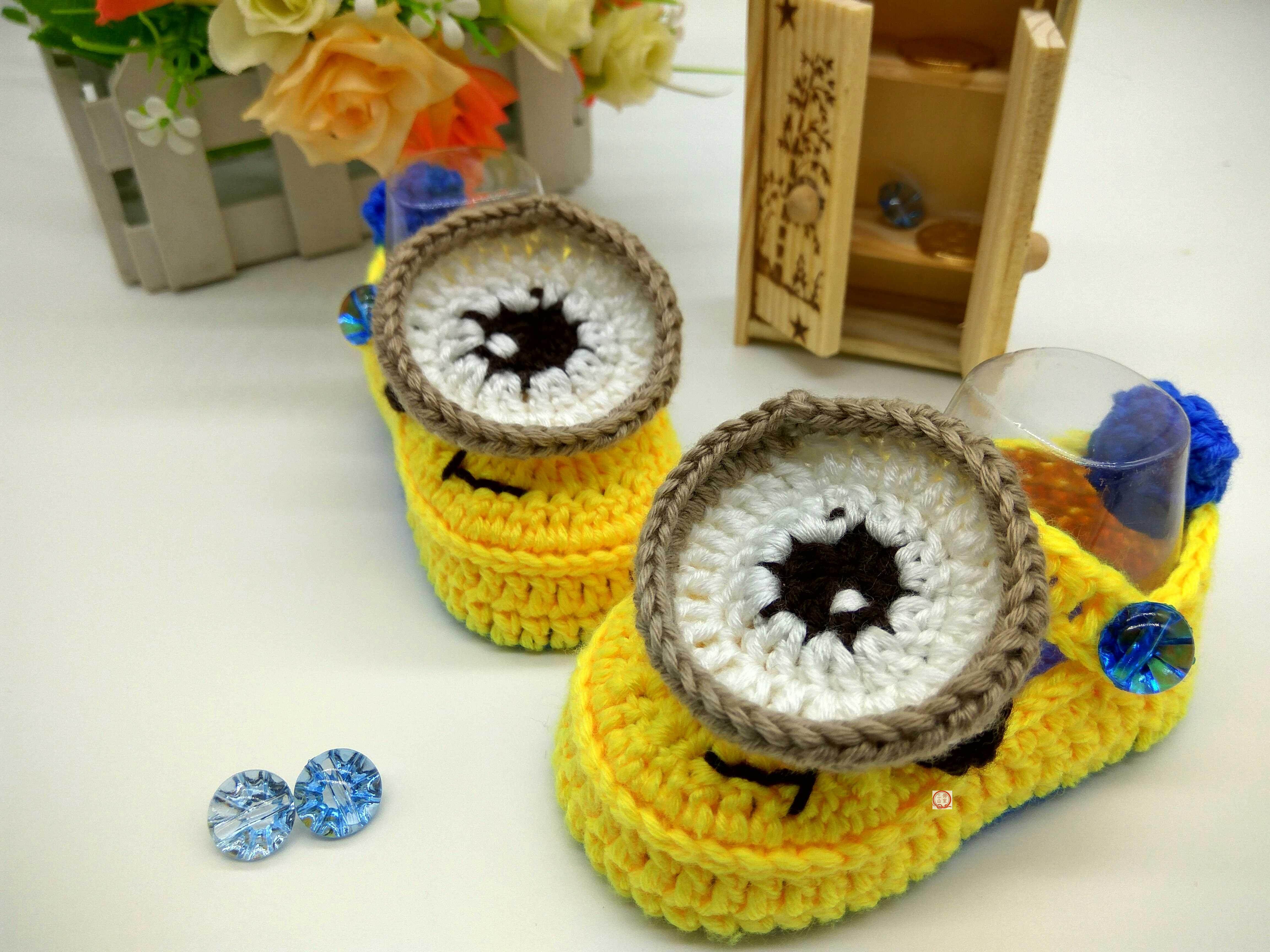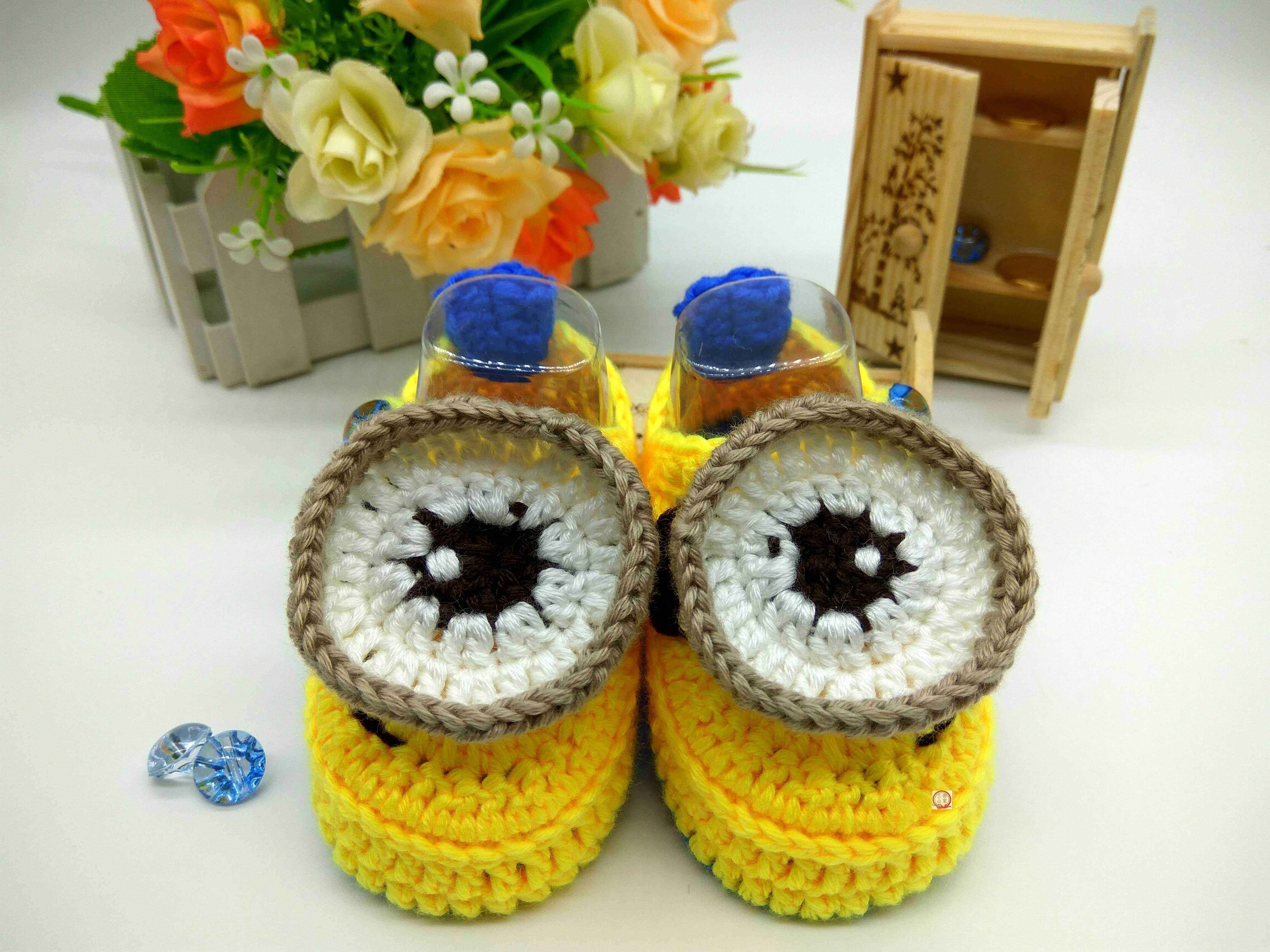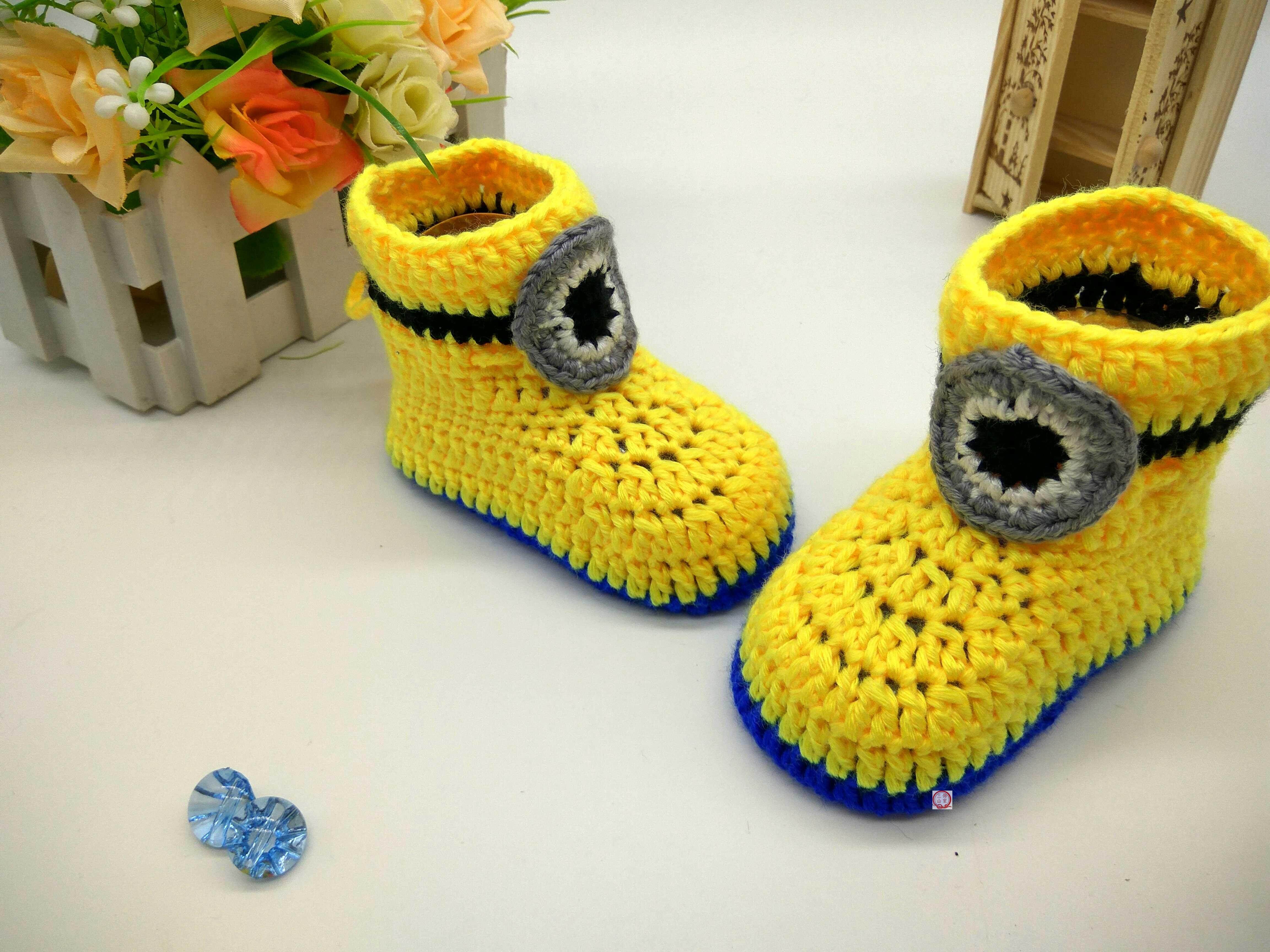 Детские шерстяные тапочки Minion, тапочки и носочки в форме тыквы, чисто ручная работа, 0-2 года, на шнуровке, несъемная обувь, мягкая подошва, теплые.