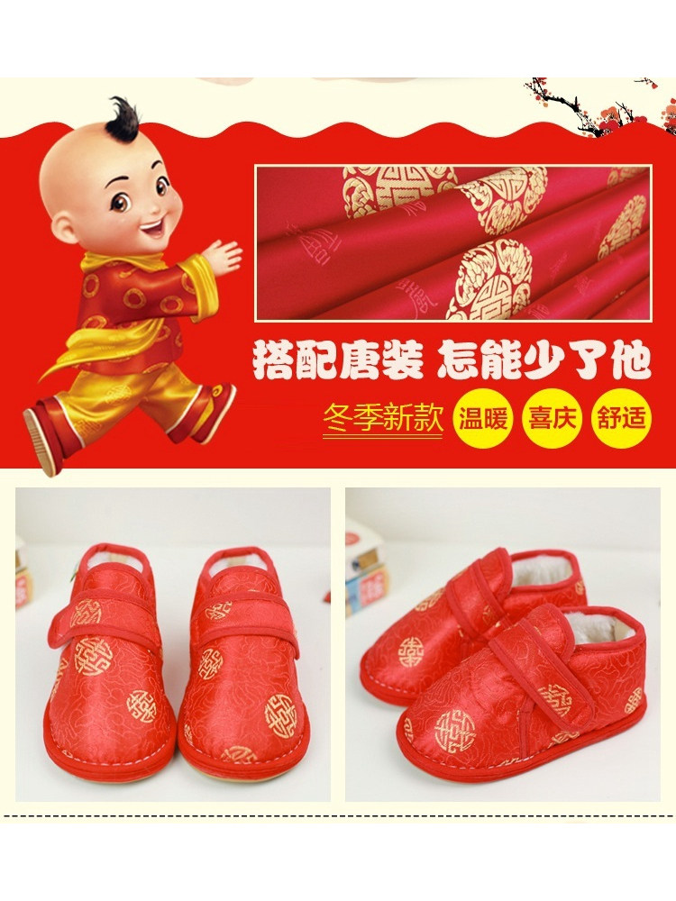 Детская ткань обувь детская ручная ручная ручная ручная работы в Пекине 1-3-летняя хлопчатобумажная туфли Новая год детская одежда для мальчиков и девочек поклоняется новой годовалой обуви 2