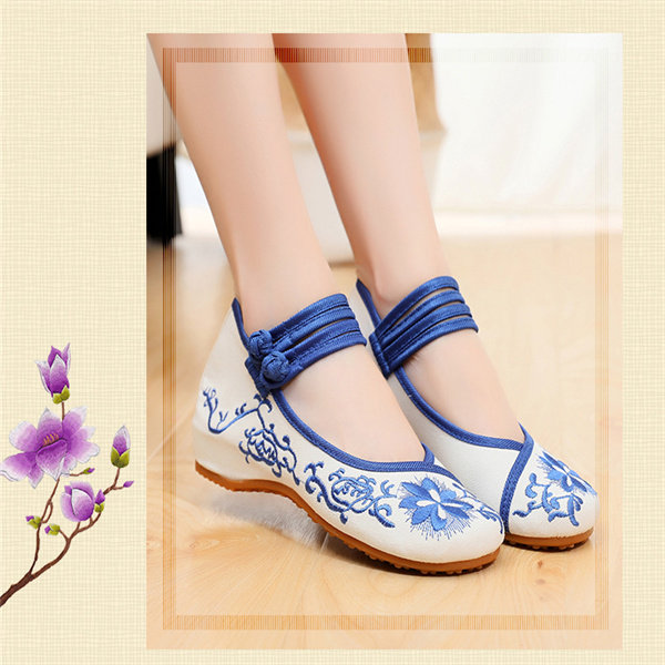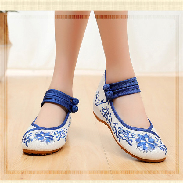 Ханьфу, детская обувь, сине-белые классические этнические слипоны, китайский стиль