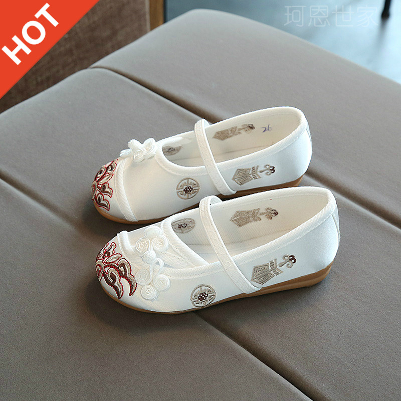 Белое комфортное детское ханьфу, с вышивкой, осеннее, мягкая подошва, китайский стиль