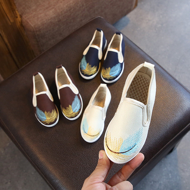 Детская тканевая нескользящая китайская вышивка для мальчиков, ханьфу, обувь, с вышивкой