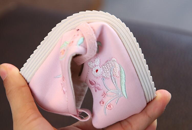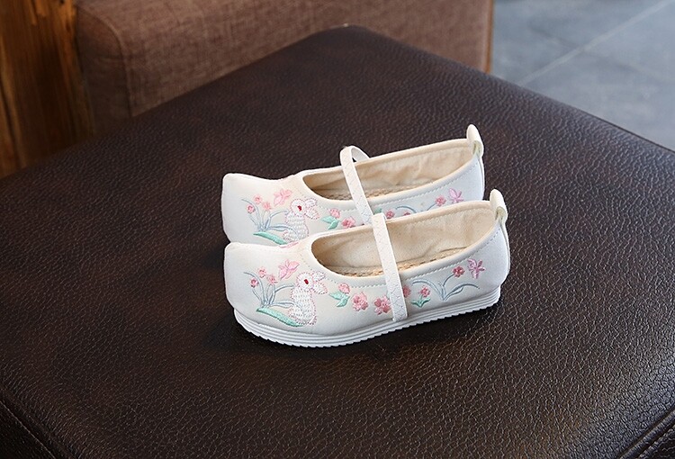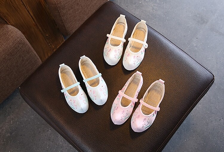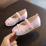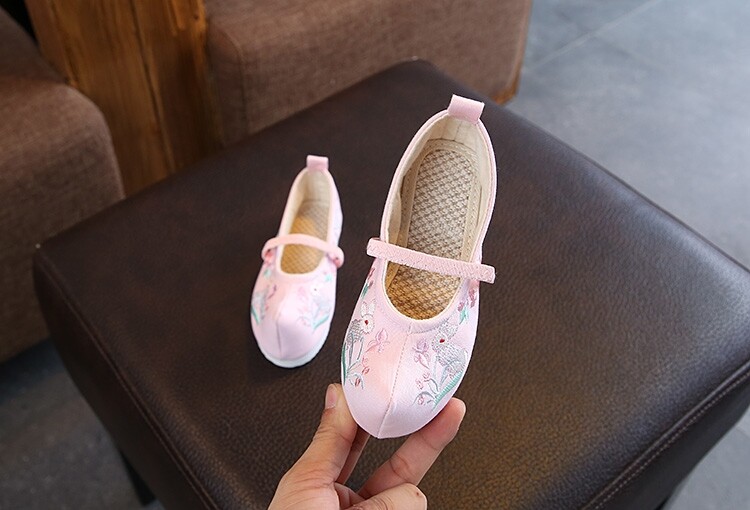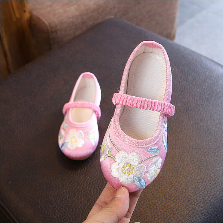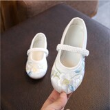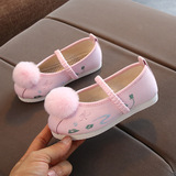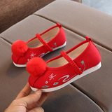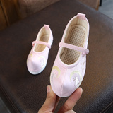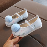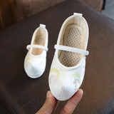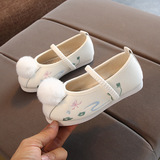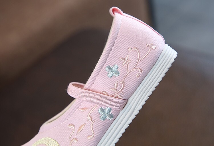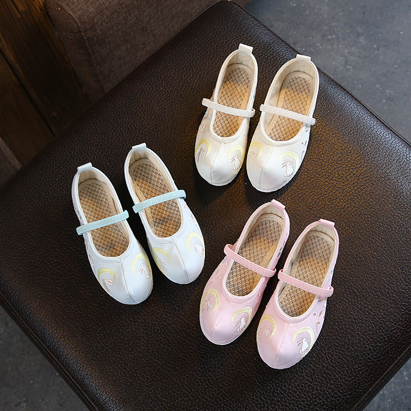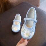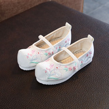 Детская квартира -запотечная детская девочка обувь древняя ветряная вышивка легкая рот обувь Hanfu обувь женская ткань