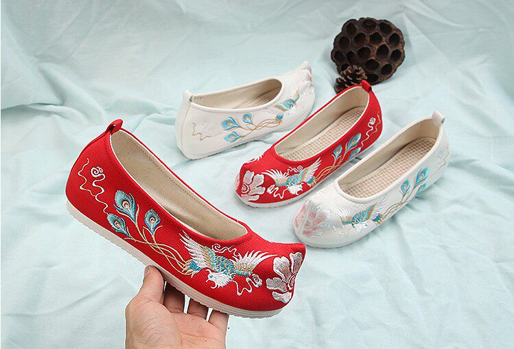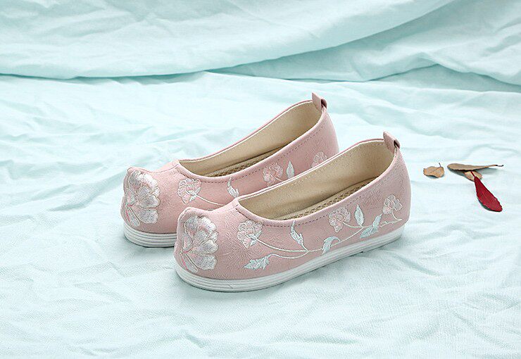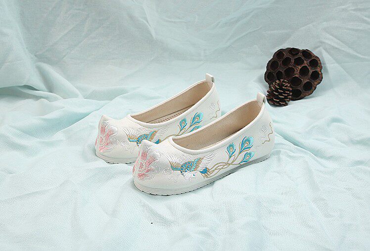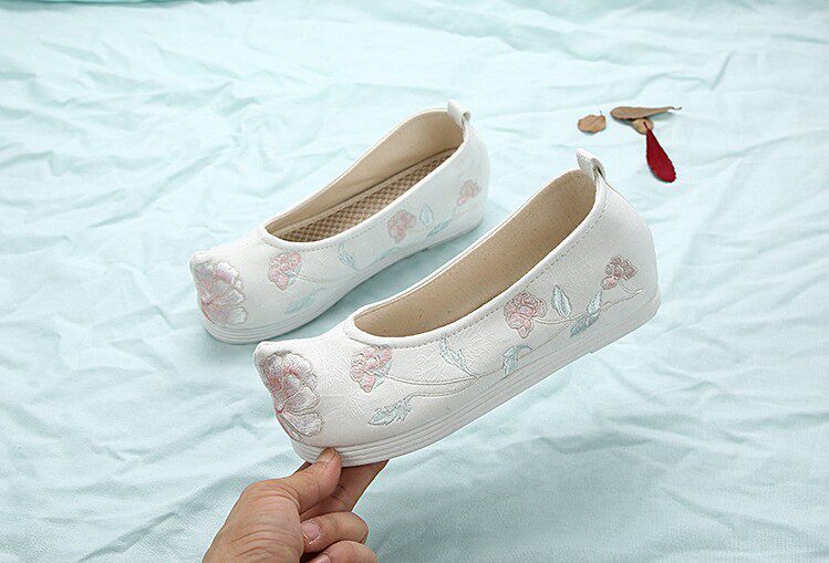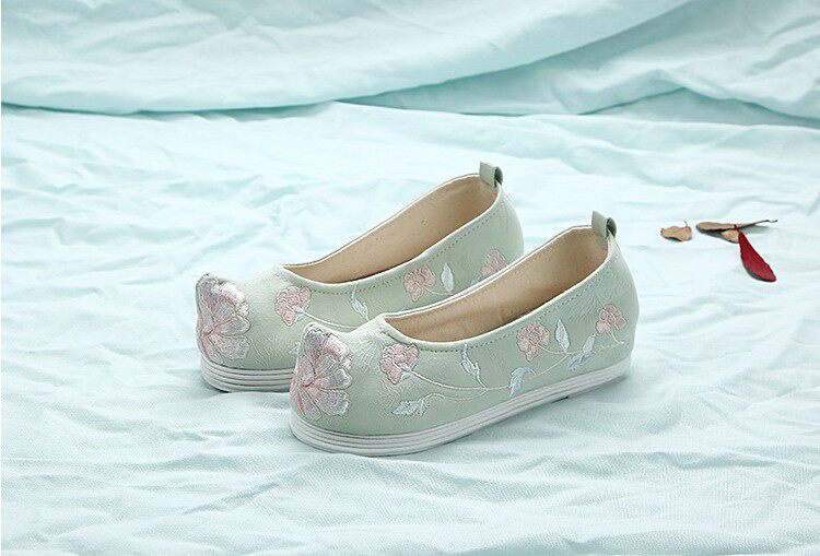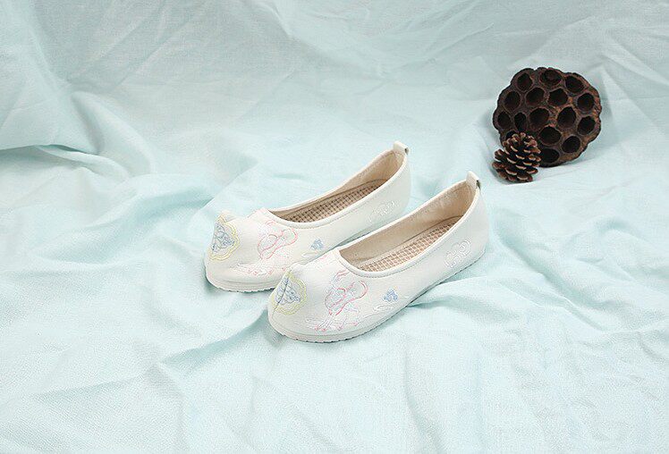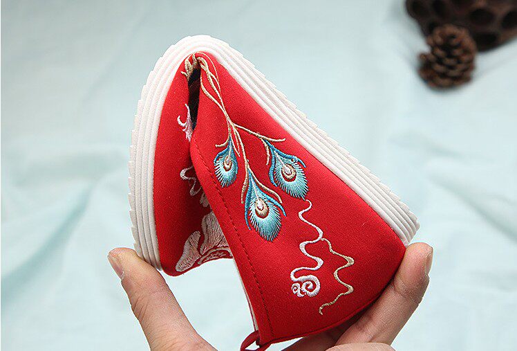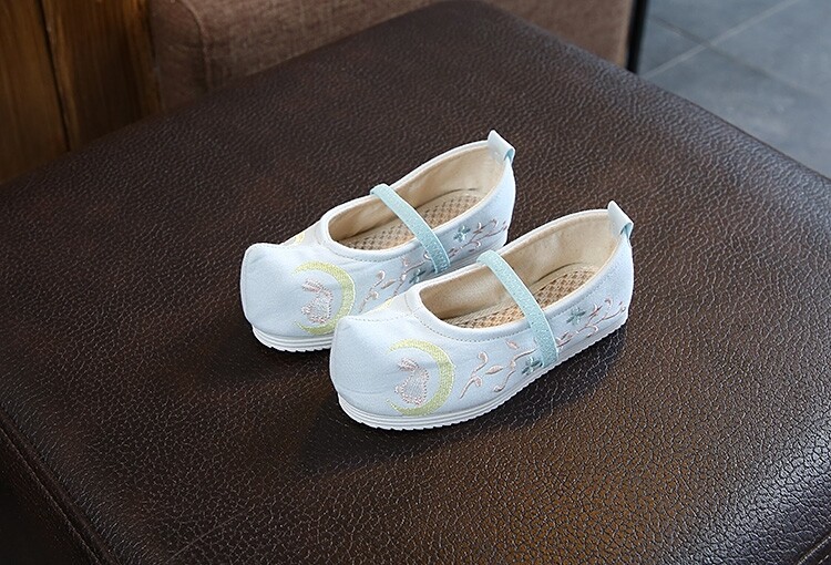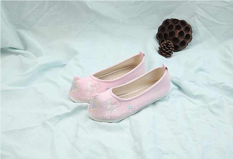 Детская квартира -запотечная детская девочка обувь древняя ветряная вышивка легкая рот обувь Hanfu обувь женская ткань