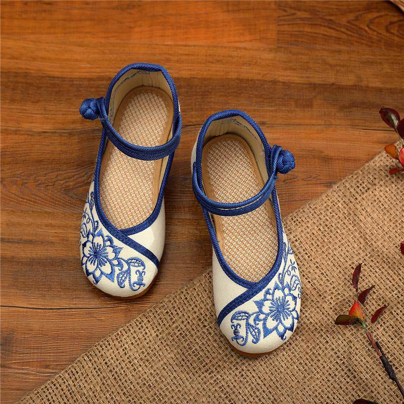 Детские сине-белые слипоны, этническая обувь, китайский стиль, этнический стиль