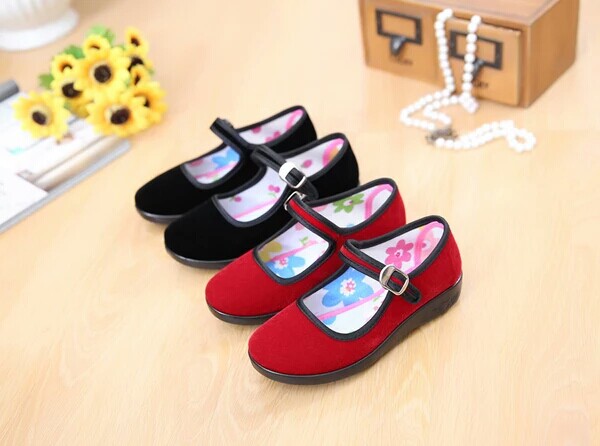 Детская черная ткань обувь девочек танце