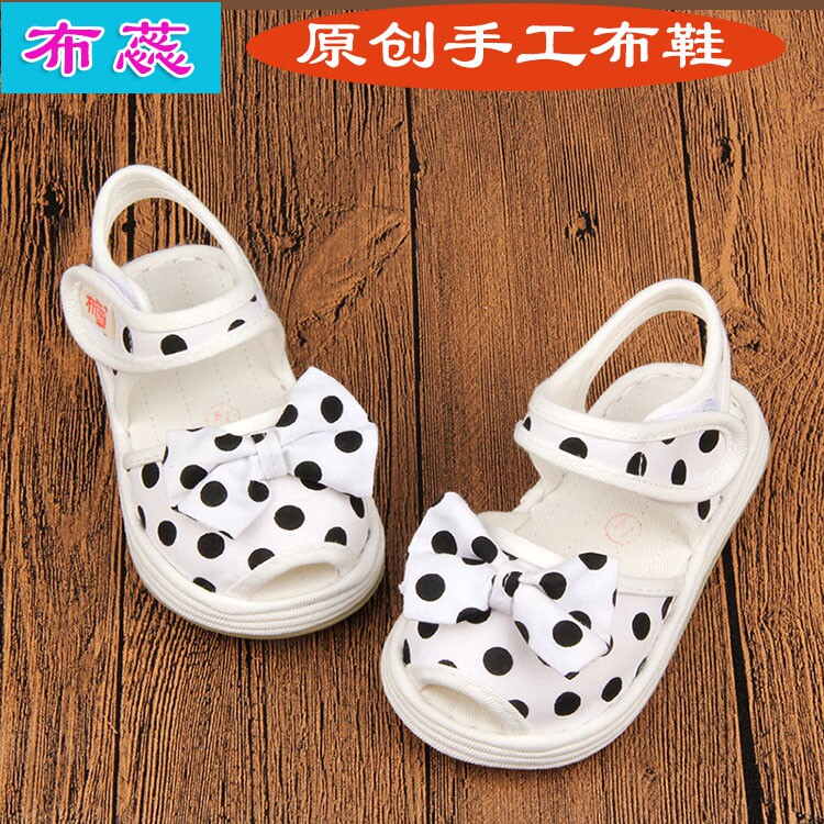 Летняя вода нефритовая лука старая пекинская детская детская ручная рука тысяча -базовая ткань сандалии сандалии домашние обувь детские сады обувь