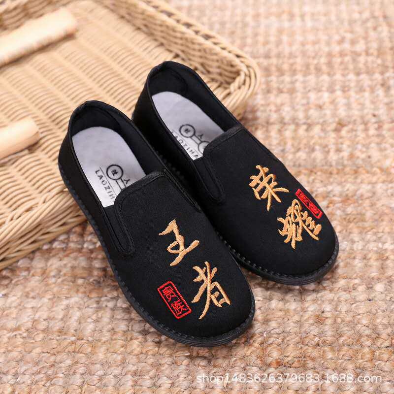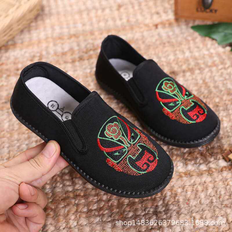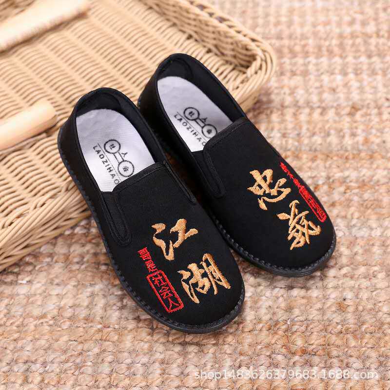 Нескользящие дышащие детские черные слипоны для мальчиков для раннего возраста, мягкая подошва, с вышивкой