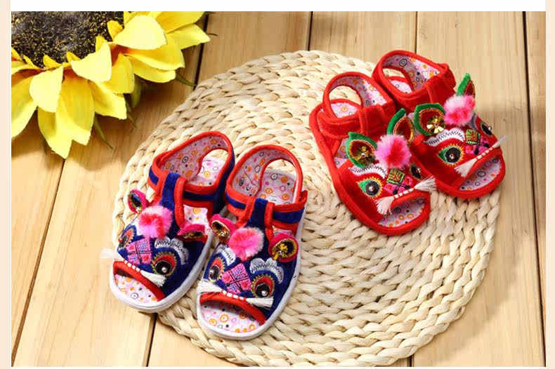 Детские туфли тигровой туфли сплетен детские кроссовки из чистой ручной работы Старая Пекин Детская полная луна лет обувь
