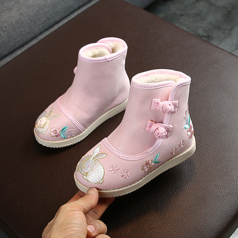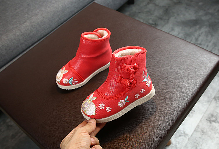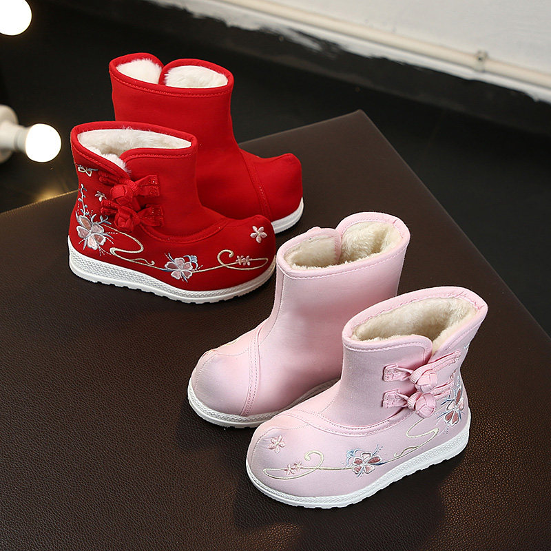 Детское этническое ханьфу для школьников, утепленные слипоны, обувь, с вышивкой, китайский стиль